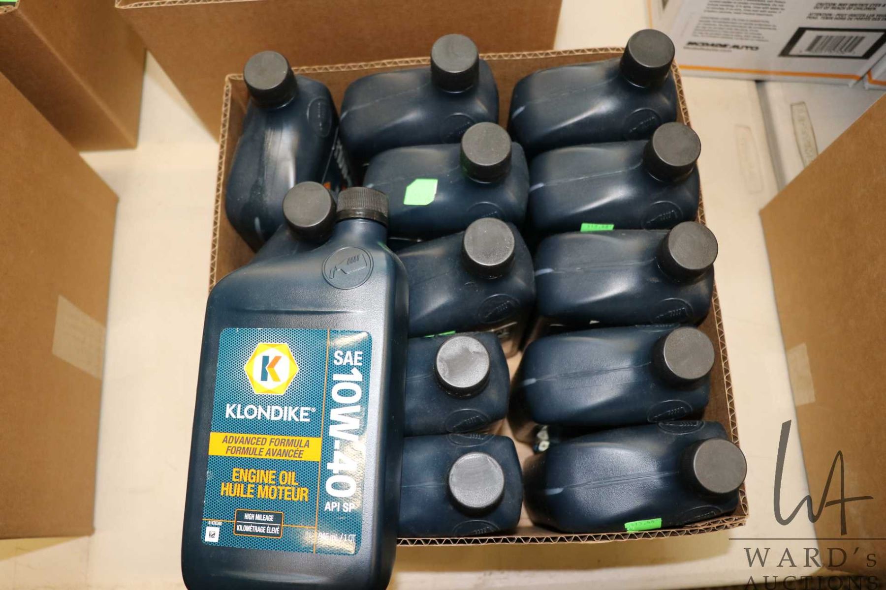 Thirteen 946 ml containers of Klondike SAE 10W-40 engine oil