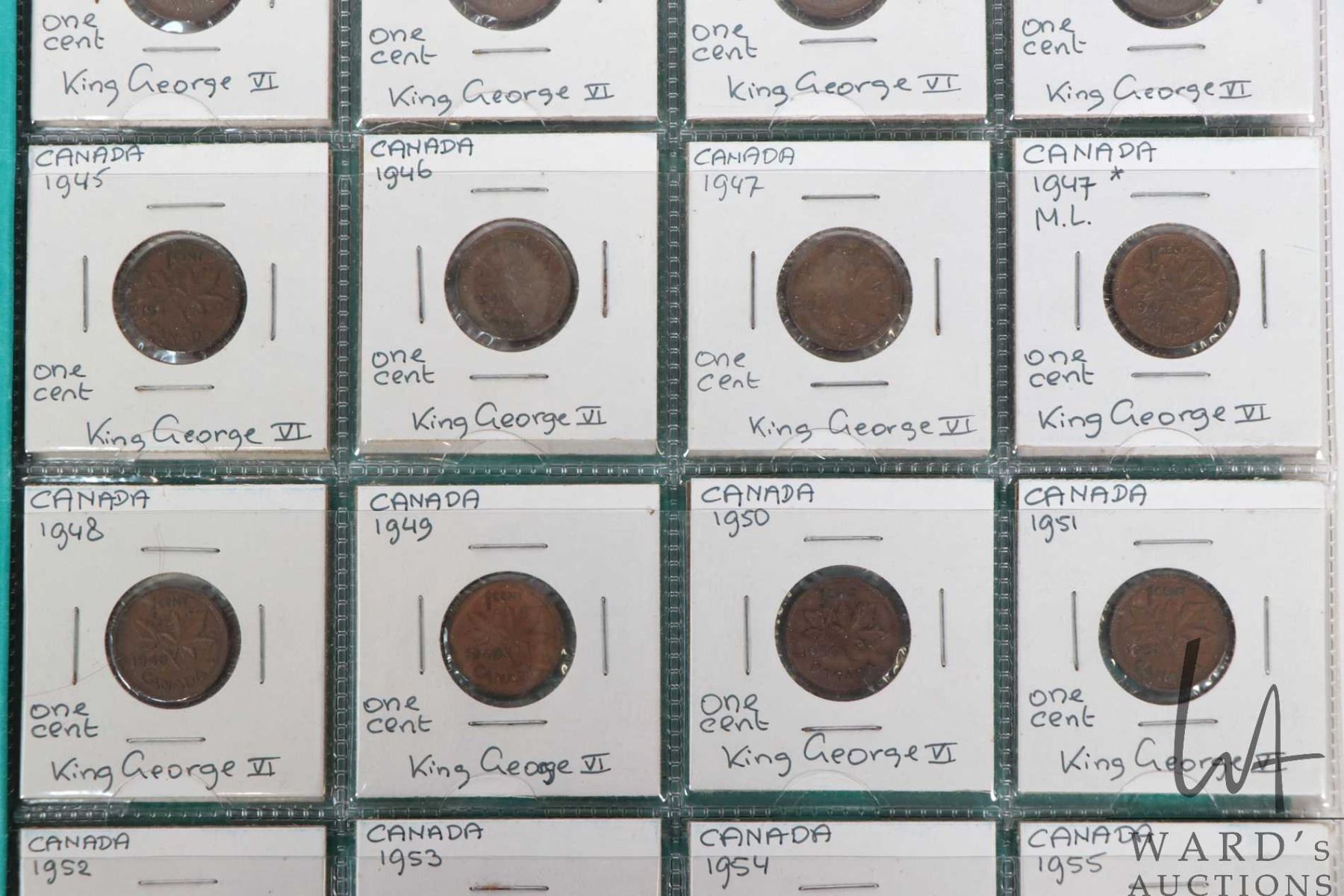 Thirty three Canadian pennies dating 1937-1968 inclusive