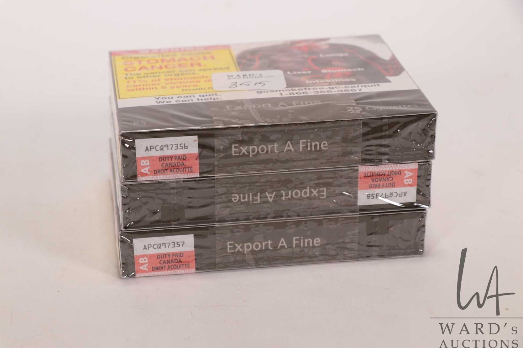Three 25 count packages of Export A Fine king size cigarettes Note: Age appropriate Canadian buyers only