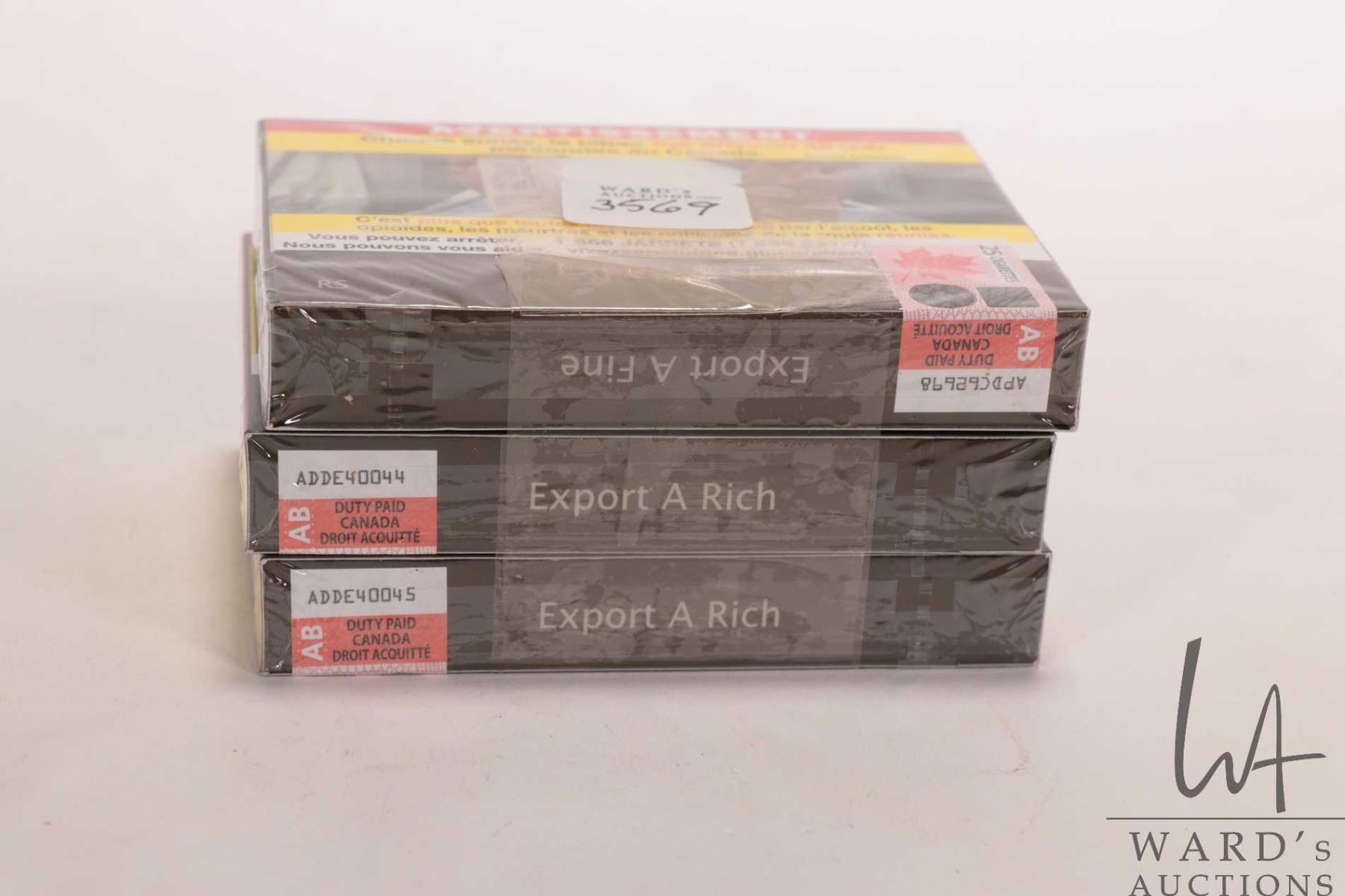 Three 25 count packages of Export A Fine regular size cigarettes Note: Age appropriate Canadian buyers only