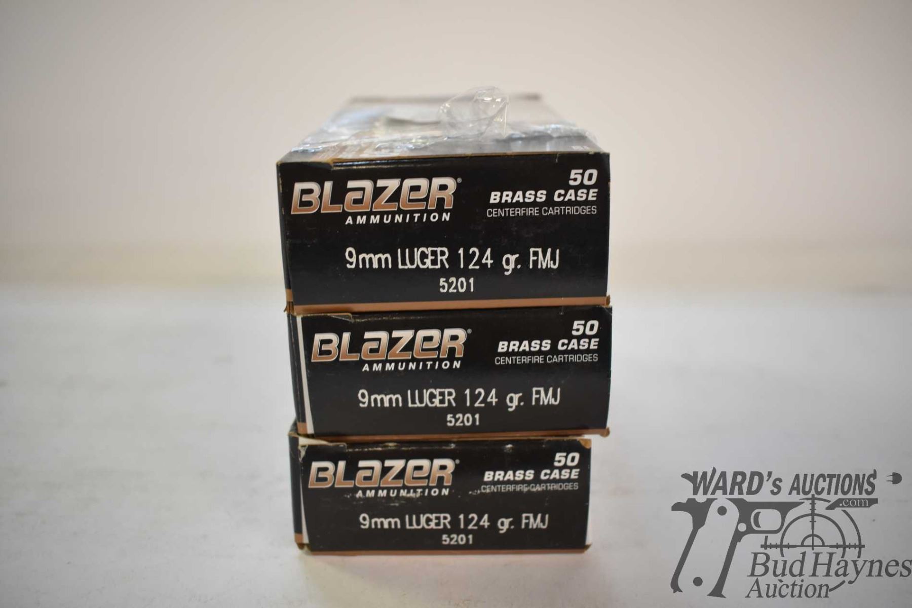 Three 50 count boxes Blazer 9mm Luger 124 GR FMJ