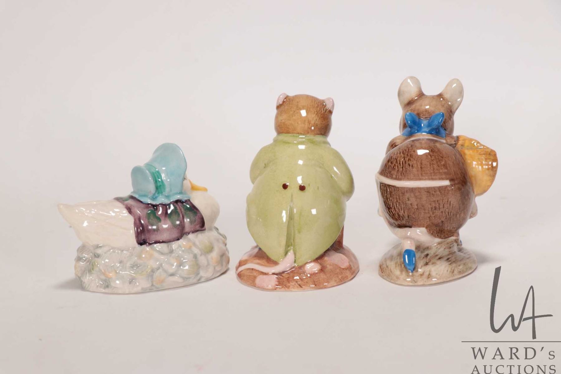 Three Beatrix Potter figurines including Beswick Appley Dapply, Jemina Puddleduck and 3" Royal Doult