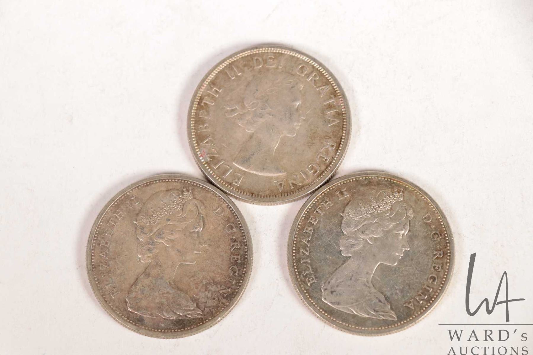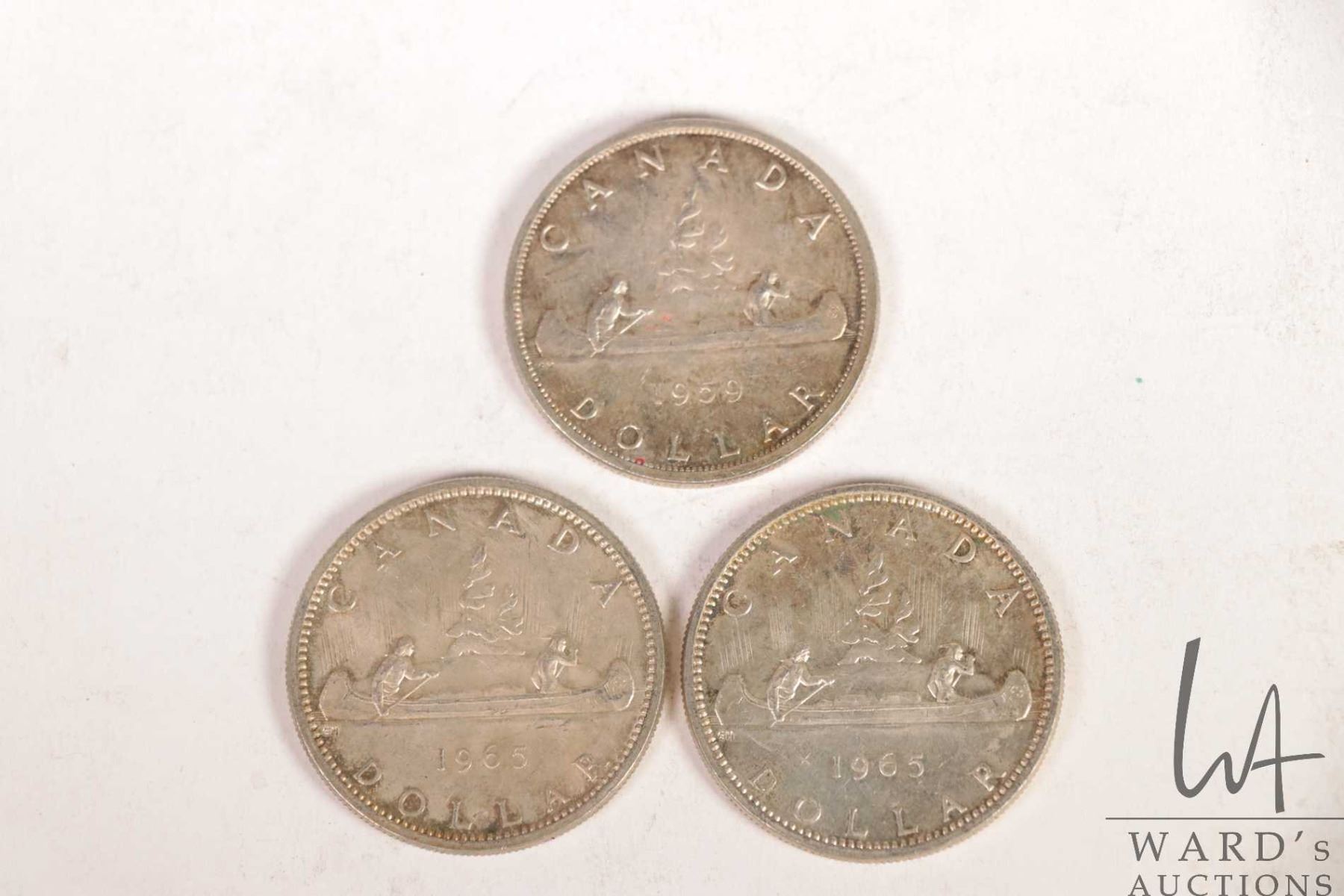 Three Canadian silver dollars including 1959 and 1965 X 2