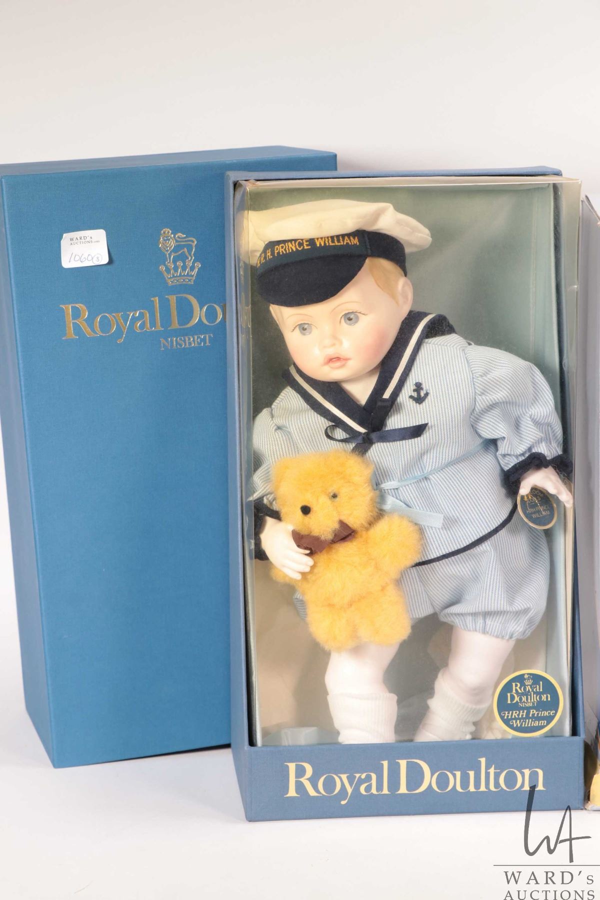 Three H.R.H Prince Williams dolls including two House of Nisbet and one Royal Doulton porcelain doll