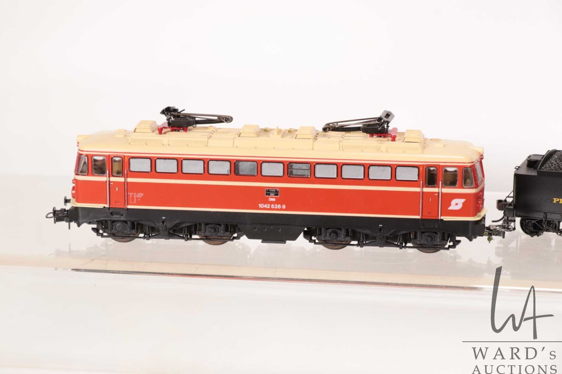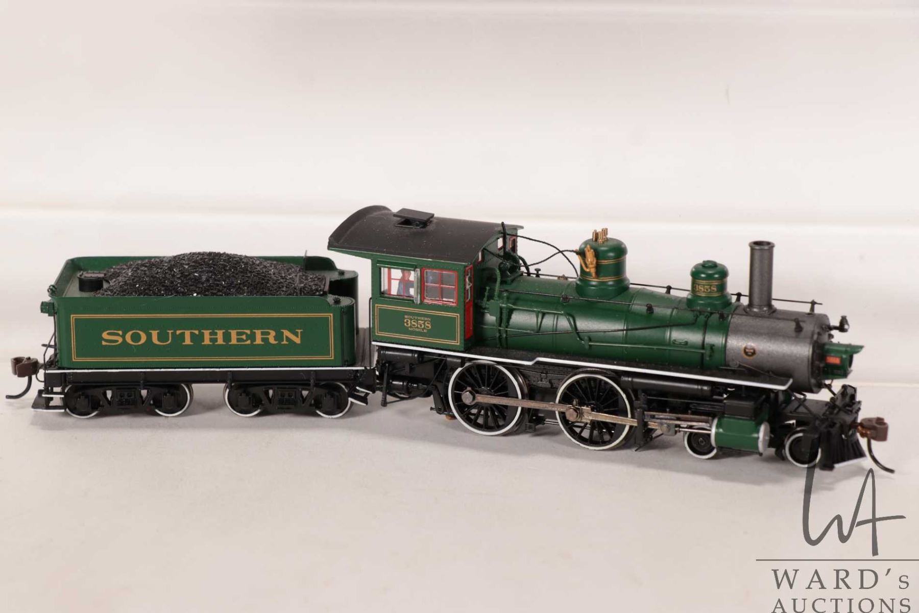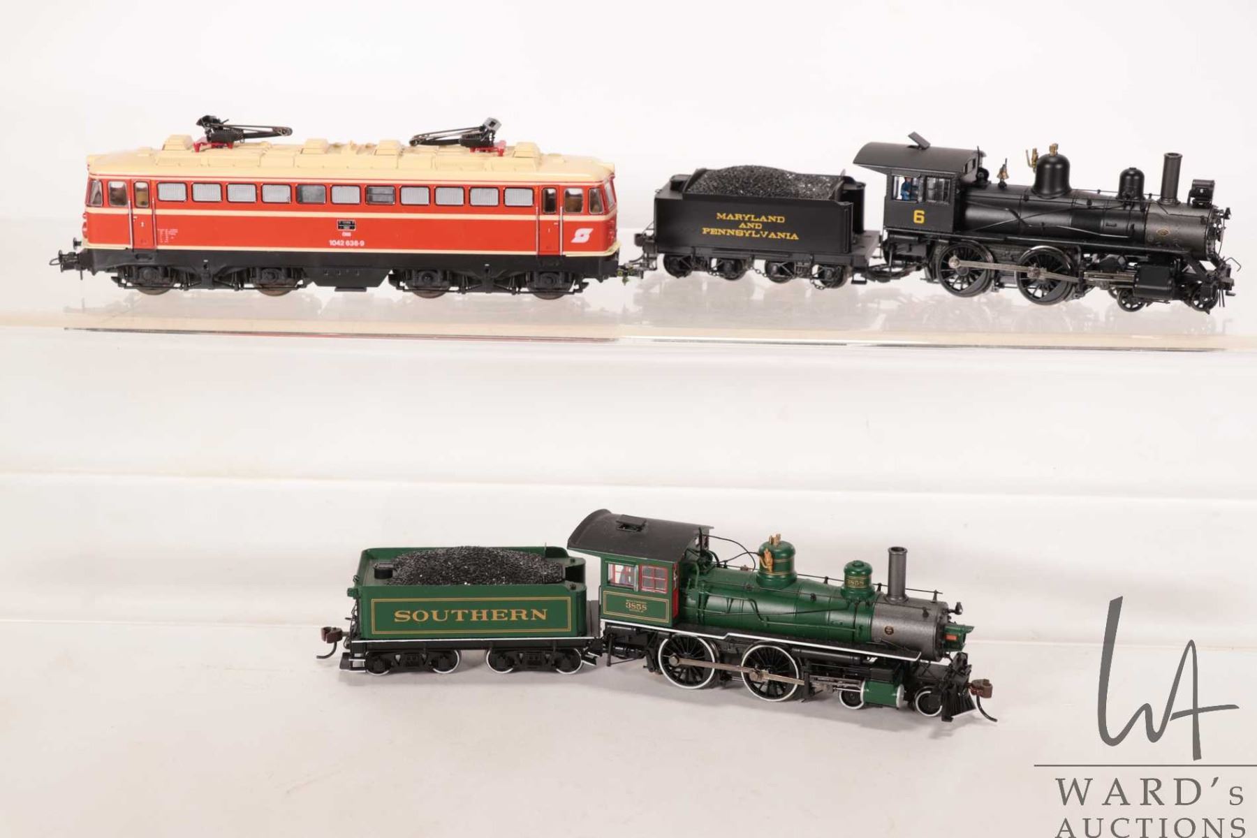 Three HO train engines including two Bachmann engines with tenders and sound and a Lima mountain engine, all working at time of cataloguing
