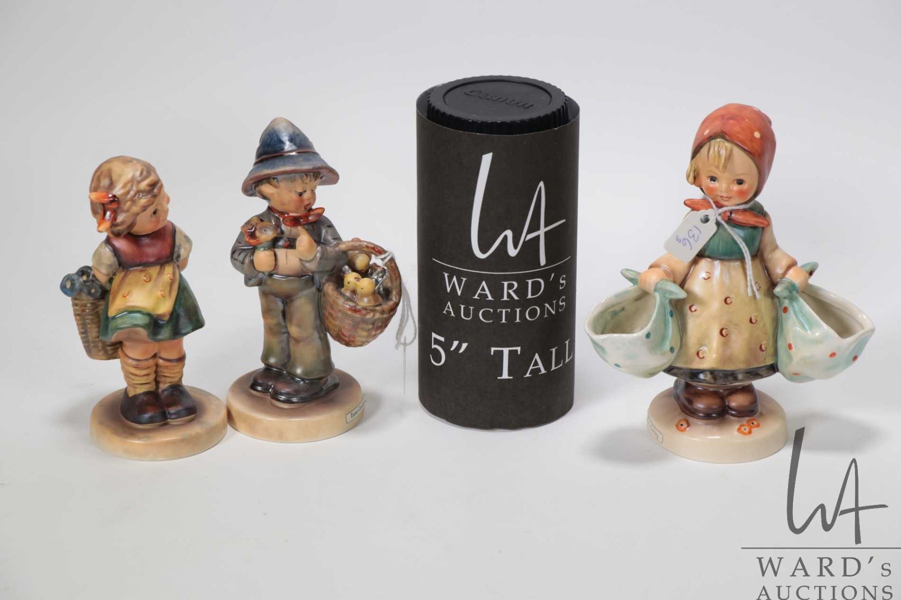 Three Hummel figurines including Mother's Darling, Easter Greetings and Bashful, all approximately 5 1/2" in height