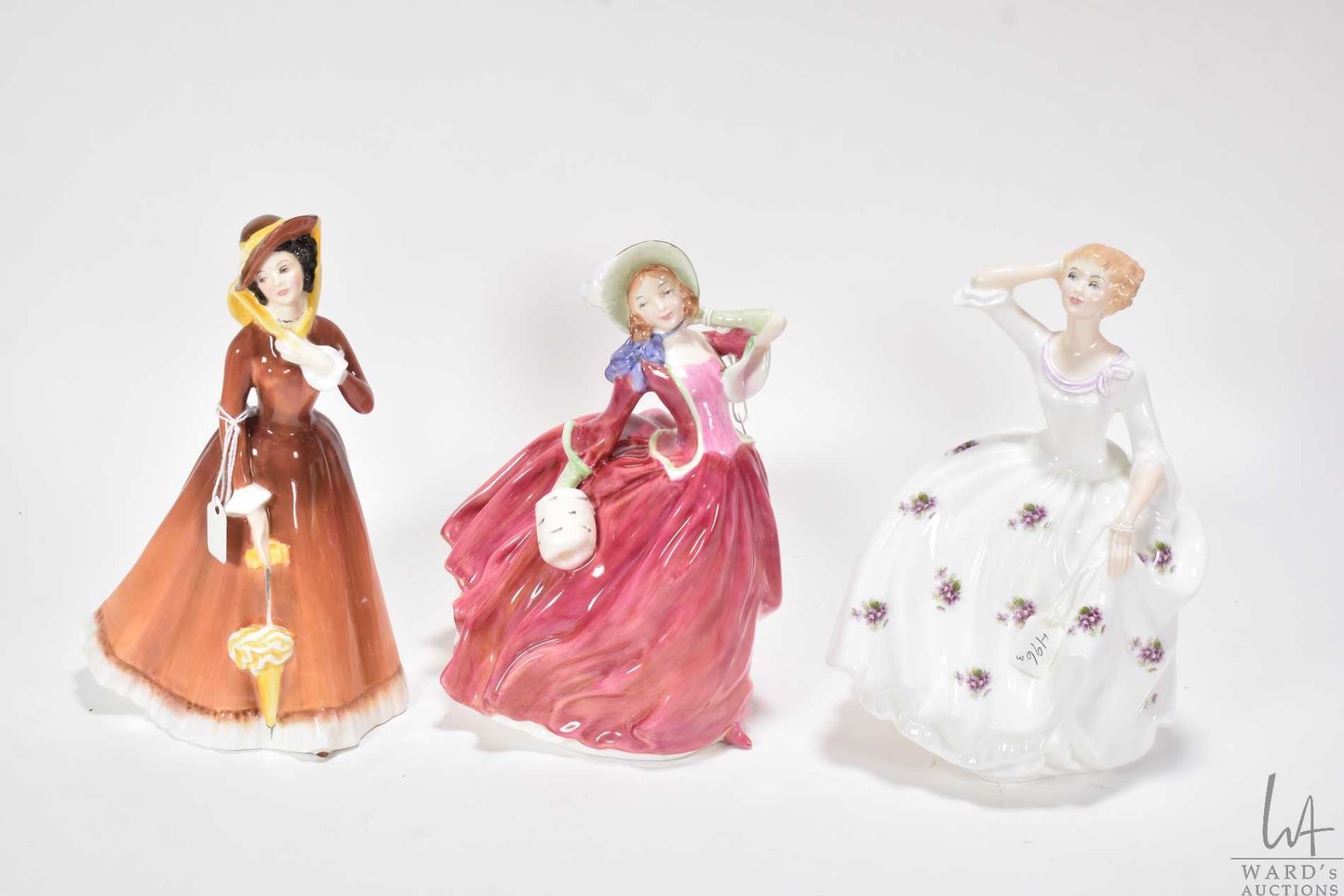 Three Royal Doulton figurines including Maureen HN2481, Autumn Breezes HN1934 and Julia HN2705
