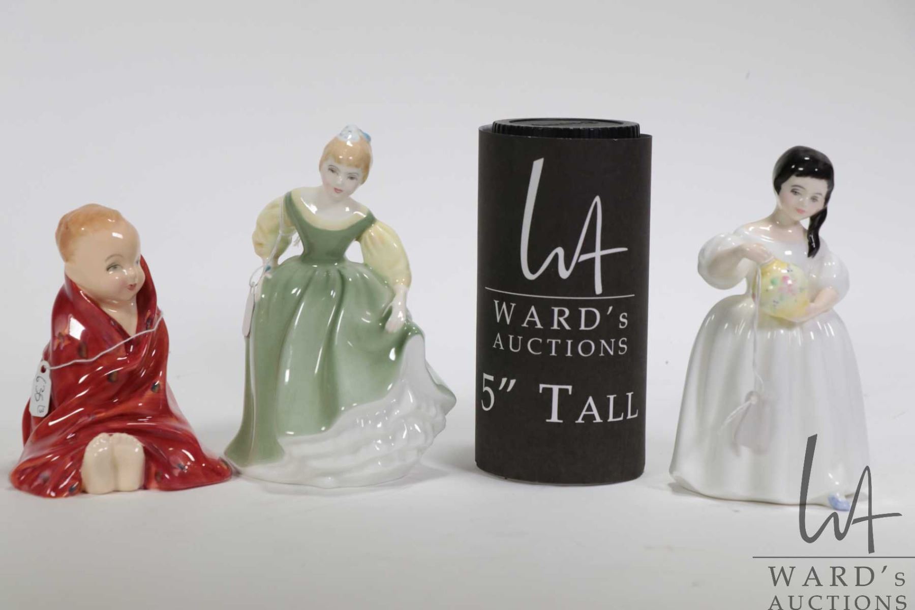 Three Royal Doulton figurines including "This Little Pig" HN# 1793, "Fair Maiden" HN# 2211 and "Mandy" HN# 2476