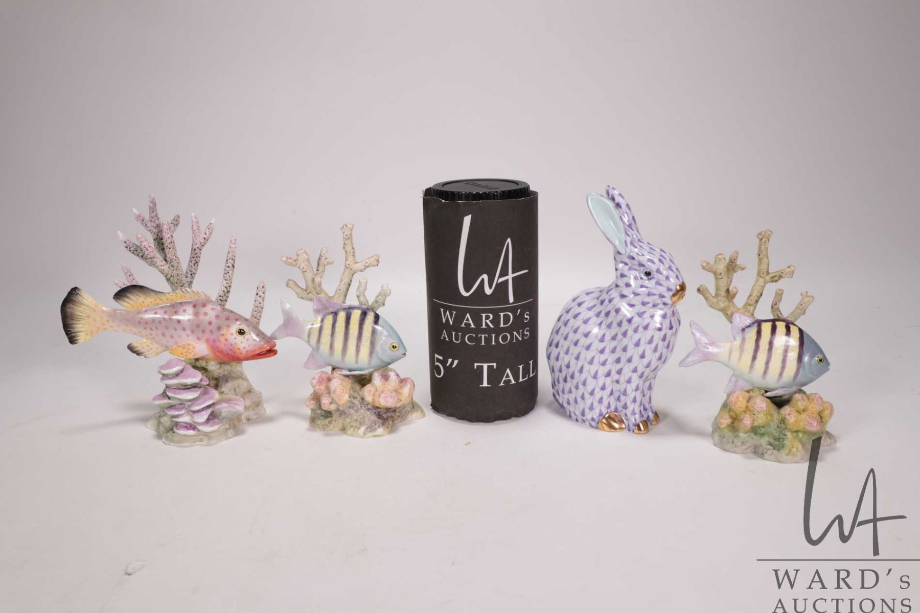 Three Royal Worcester fish including Red Hind, two Sergenant Major and Herend porcelain 5 1/2" rabbi
