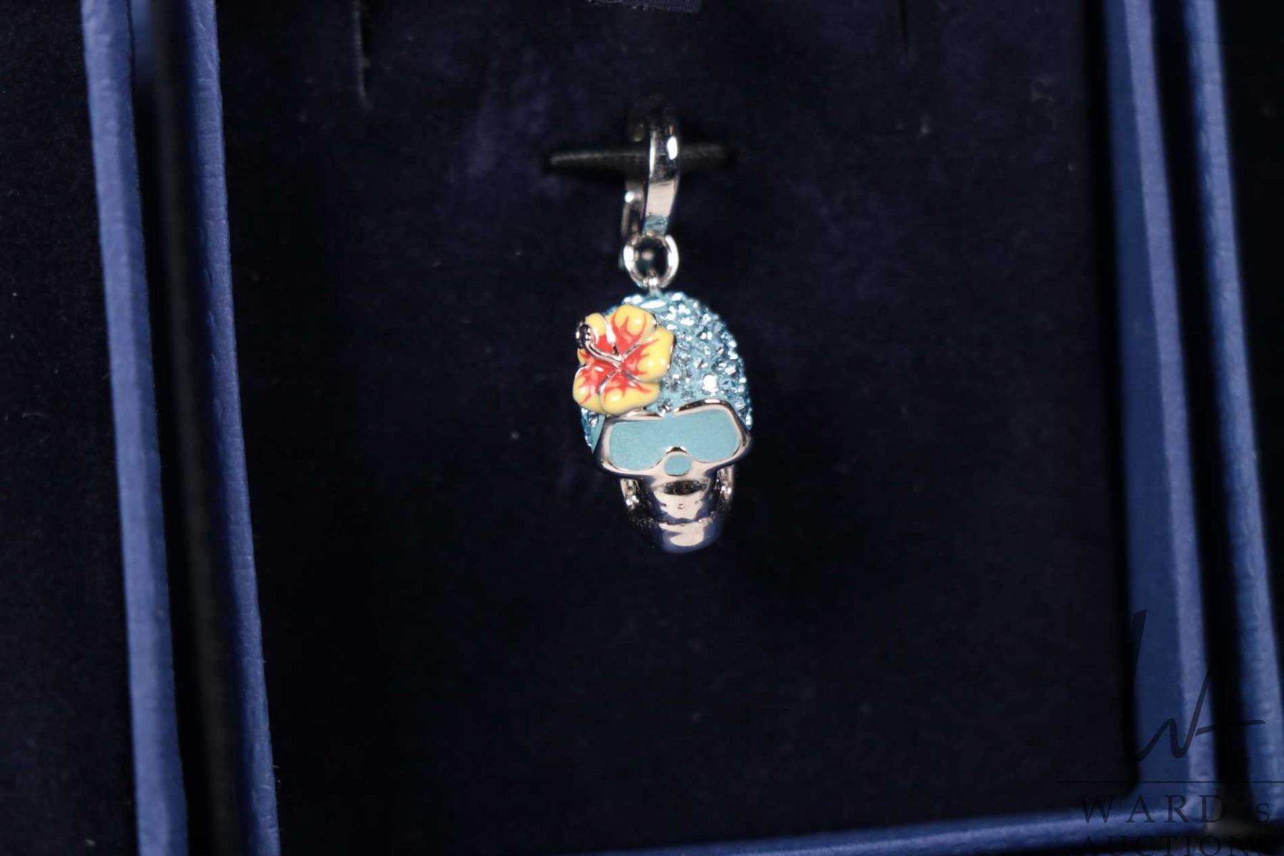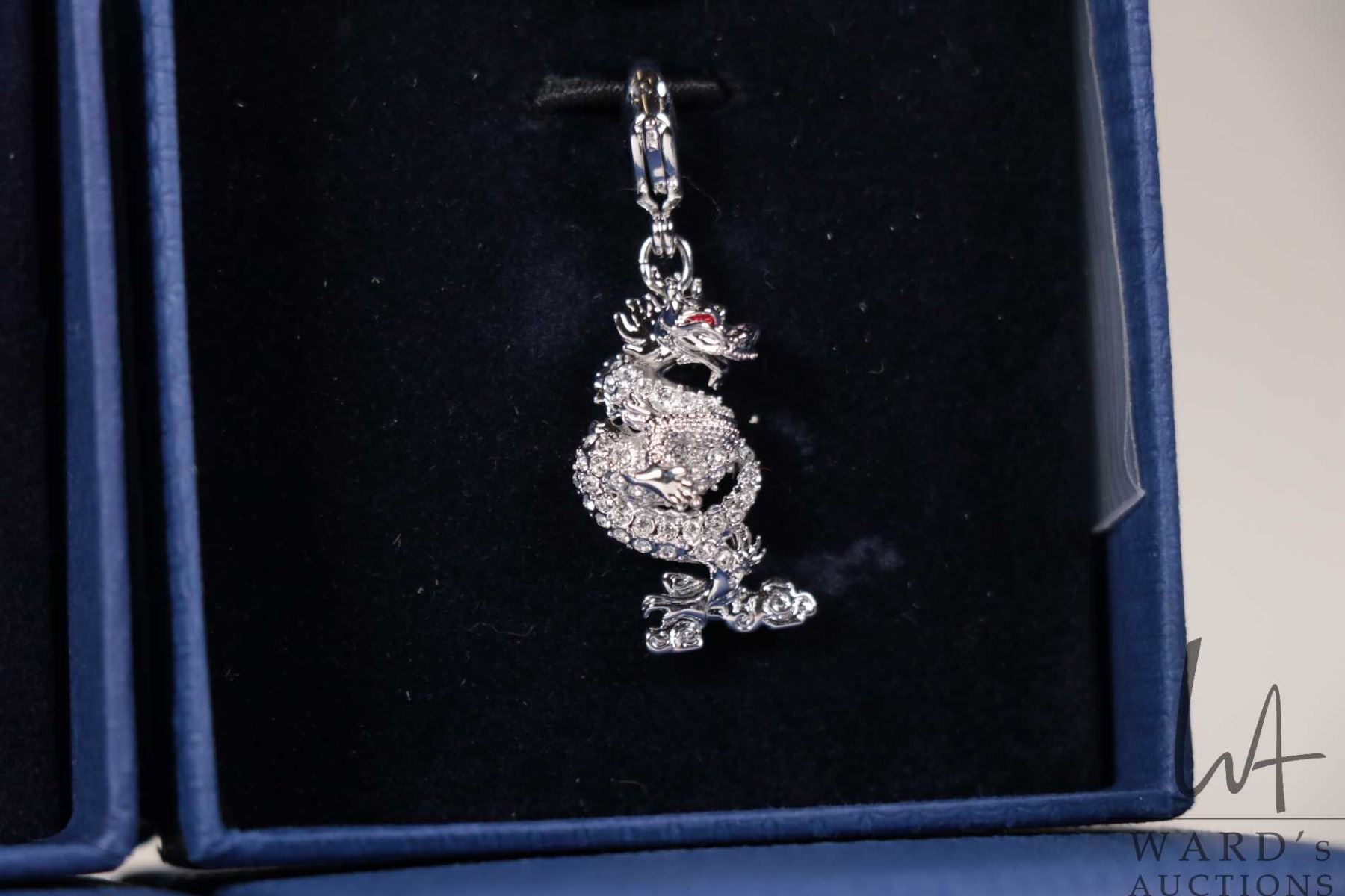Three Swarovski hanging charms including two skulls and an Asian dragon plus a Chamilia .925 sterlin