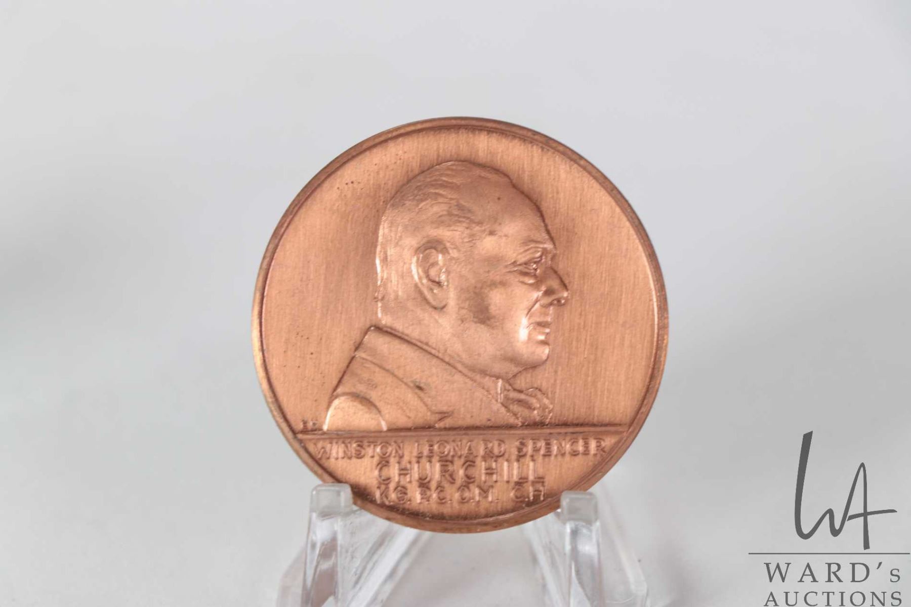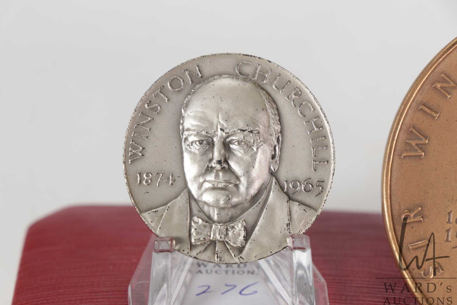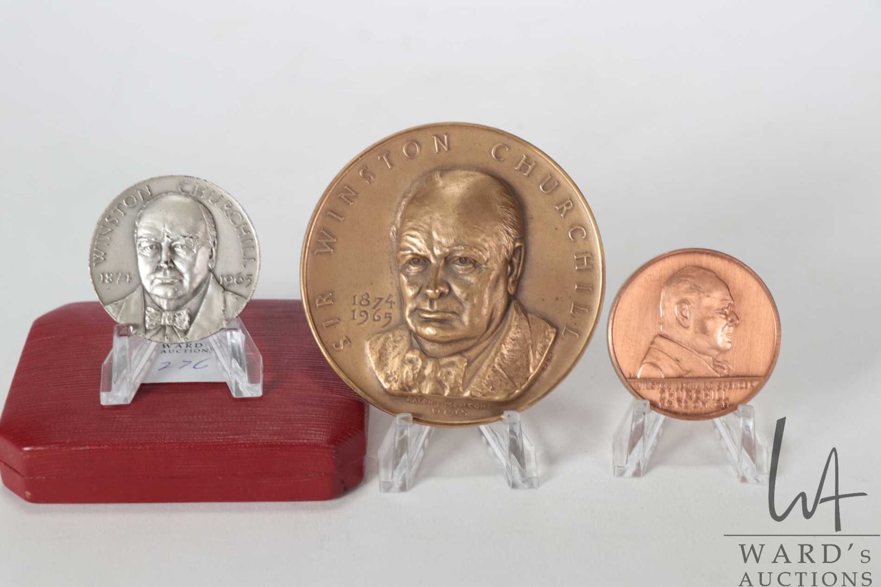Three Winston Churchill medallions including bronze 2 3/4". boxed white medal and copper