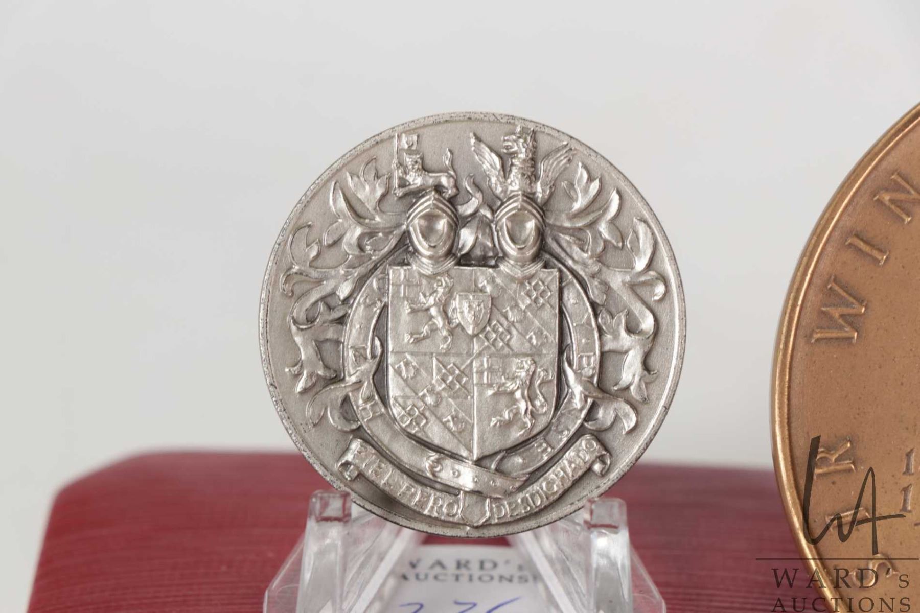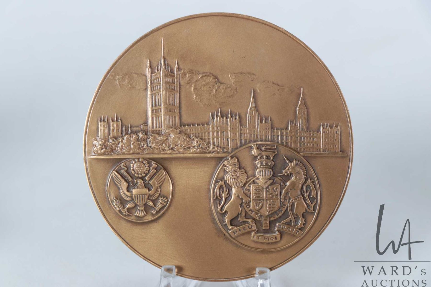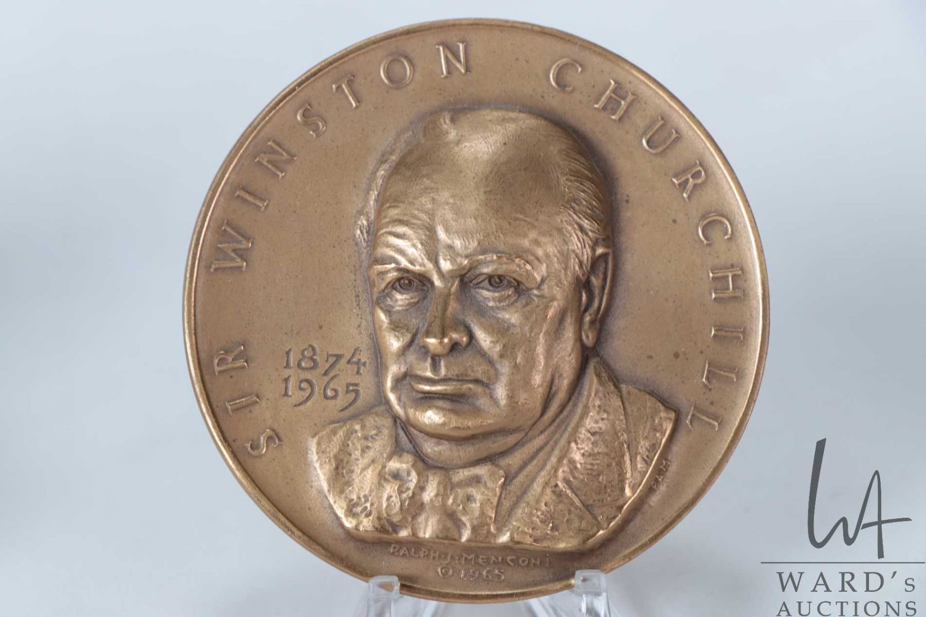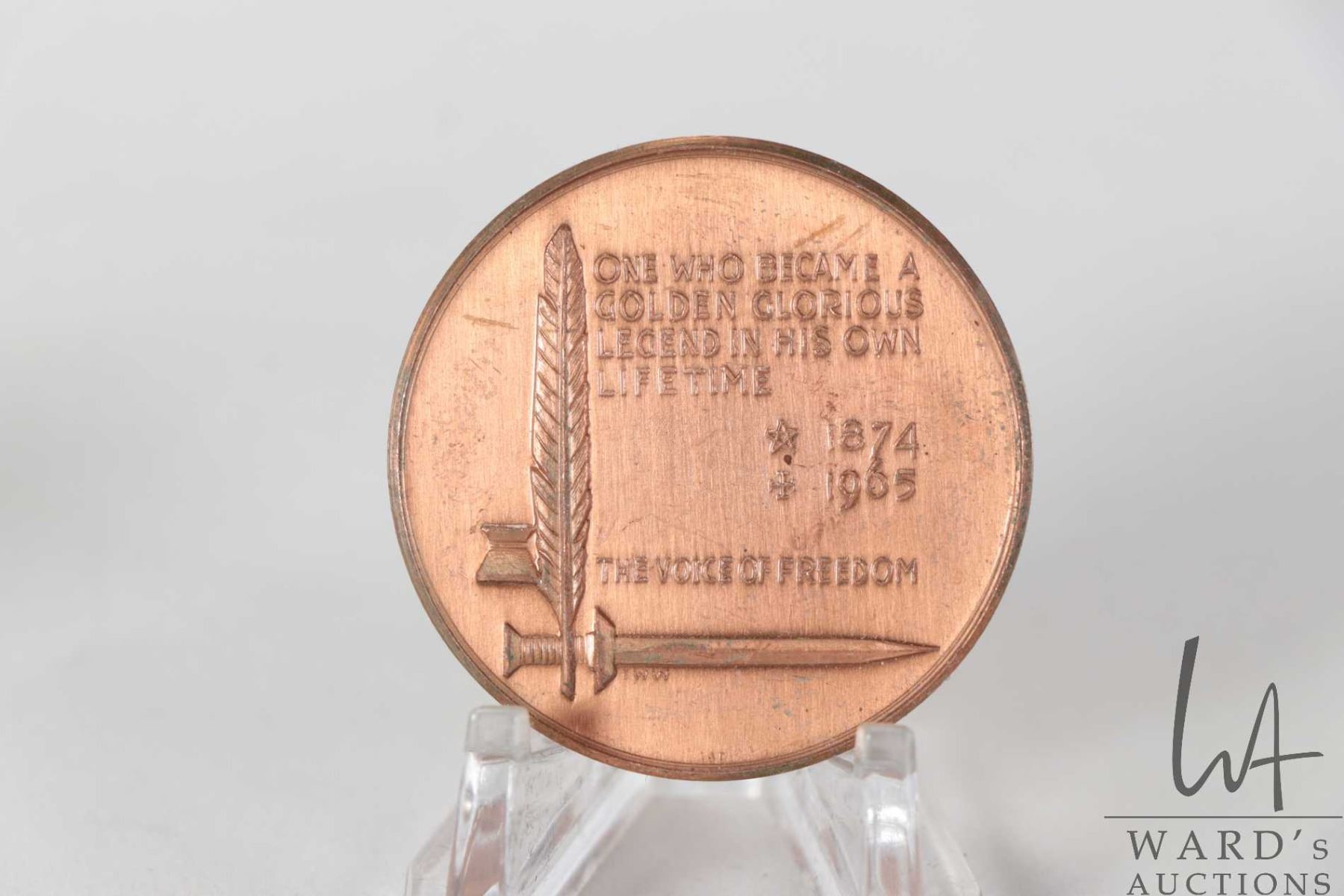 Three Winston Churchill medallions including bronze 2 3/4". boxed white medal and copper