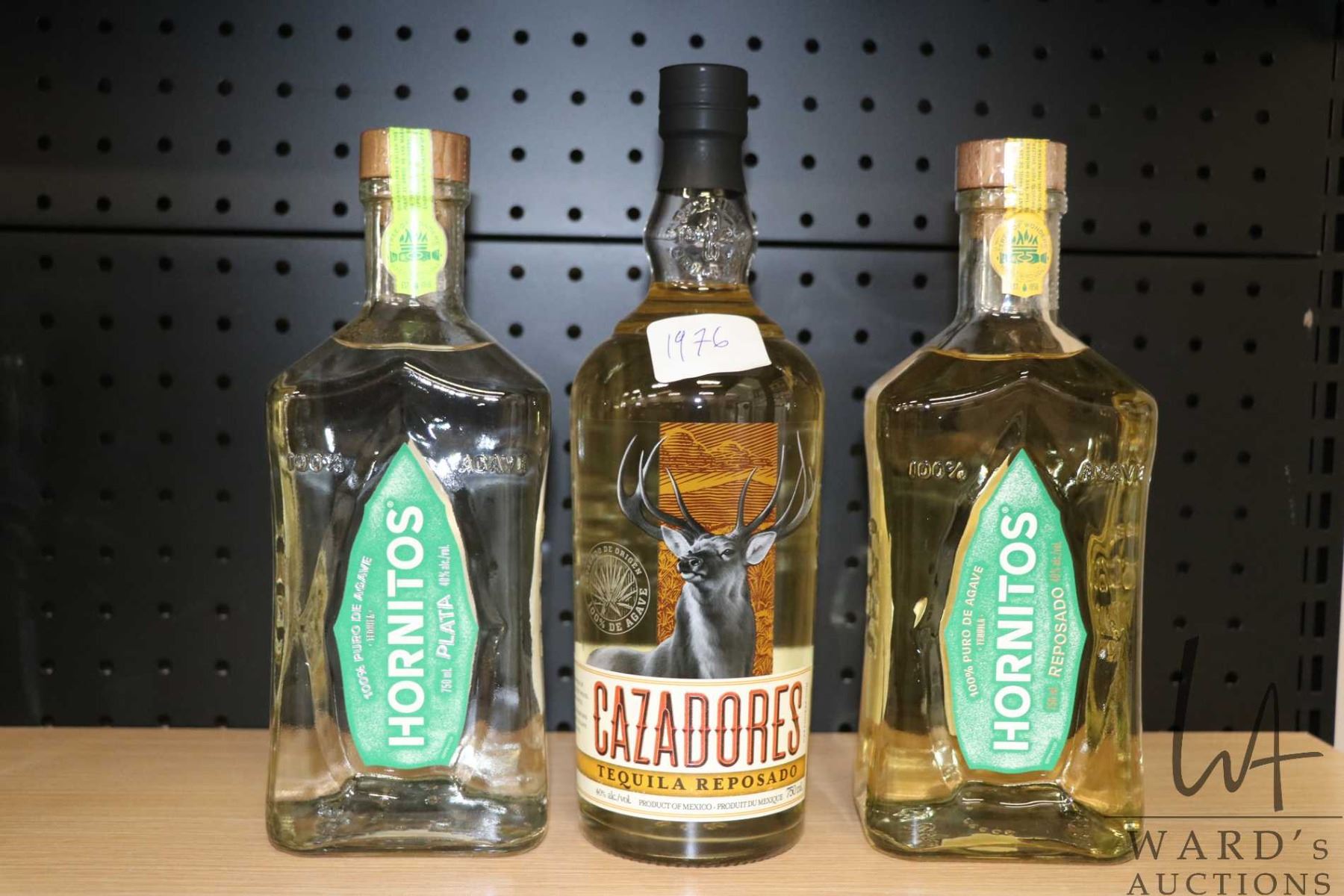 Three assorted bottles of Tequila including two Hornitos Reposado 750ml / 40% ABV, and one Cazadores Reposado 750ml / 40% ABV Note: Alcohol cannot be insured by any courier in Canada. Local pick up is recommended. Canadian bidders only