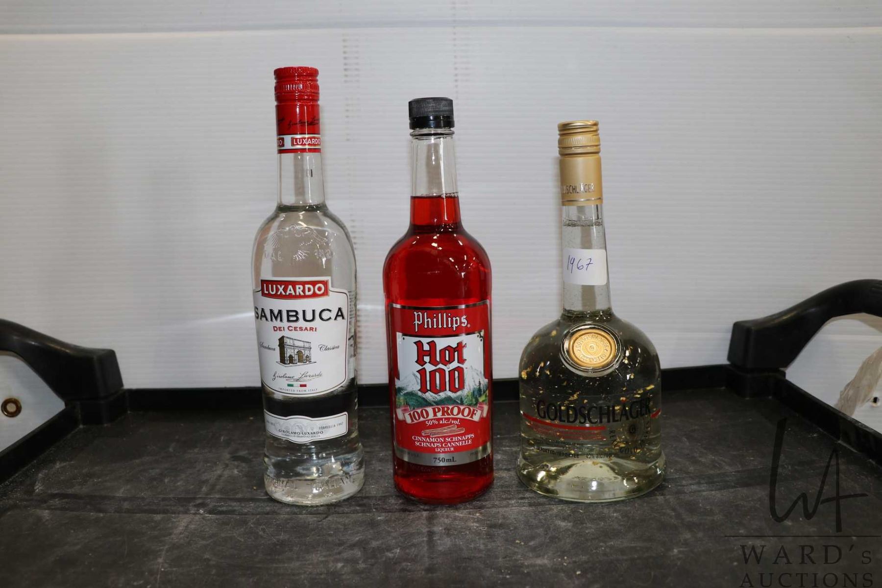 Three assorted bottles of liquor including one Luxardo Sambuca 750ml, one Phillips Hot 100 Cinnamon Schnapps 750ml / 50% ABV, and one Goldschlager Cinnamon Schnapps with Gold Flakes 750ml / 40% ABV Note: Alcohol cannot be insured by any courier in Canada. Local pick up is recommended. Canadian bidders only