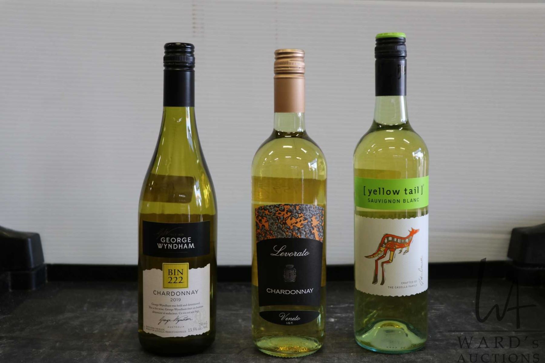 Three bottles of wine including George Wyndham Chardonnay 2019 750ml / 13.5% ABV, Levorato Chardonnay 750ml, and a Yellow Tail Sauvignon Blanc 750ml Note: Alcohol cannot be insured by any courier in Canada. Local pick up is recommended. Canadian bidders only