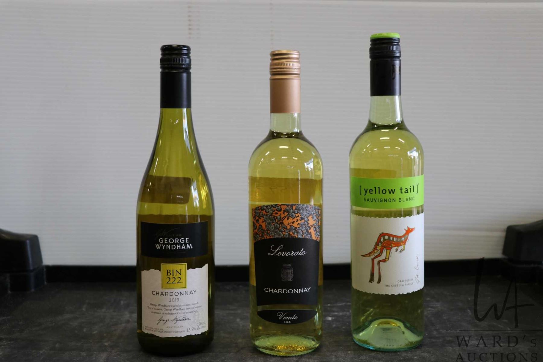 Three bottles of wine including George Wyndham Chardonnay 2019 750ml / 13.5% ABV, Levorato Chardonnay 750ml, and a Yellow Tail Sauvignon Blanc 750ml Note: Alcohol cannot be insured by any courier in Canada. Local pick up is recommended. Canadian bidders only