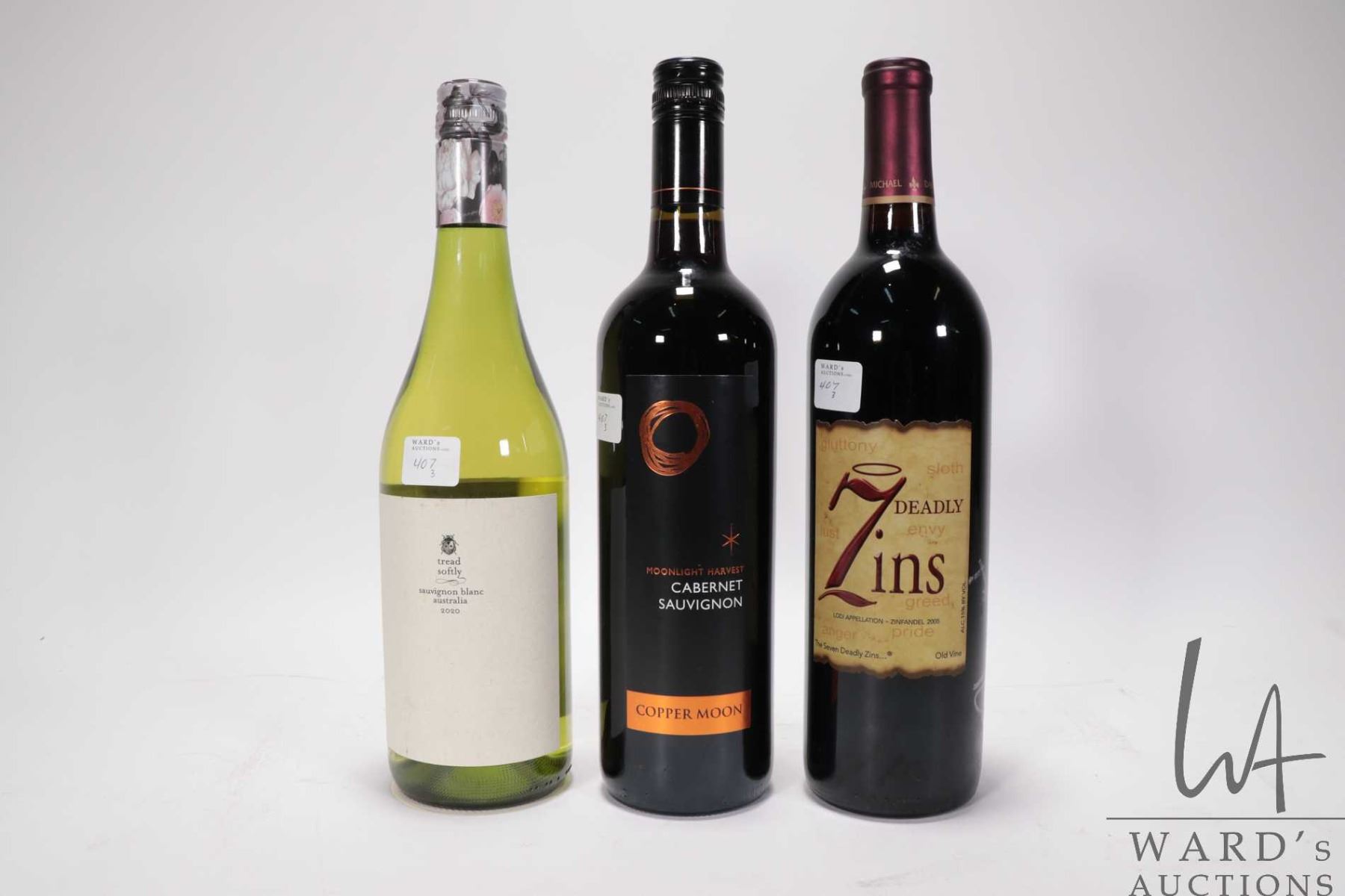 Three bottles of wine including Seven Deadly Zins 2005 Zinfandel, Copper Moon Moonlight Harvest Cabe
