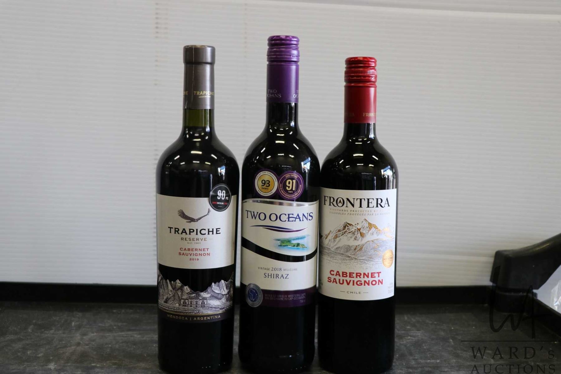 Three bottles of wine including Trapiche Reserve Cabernet Sauvignon 2019 750ml / 13.5% ABV, Two Oceans Shiraz 2018 750ml / 13.5% ABV, and a Frontera Cabernet Sauvignon 750ml / 12% ABV Note: Alcohol cannot be insured by any courier in Canada. Local pick up is recommended. Canadian bidders only