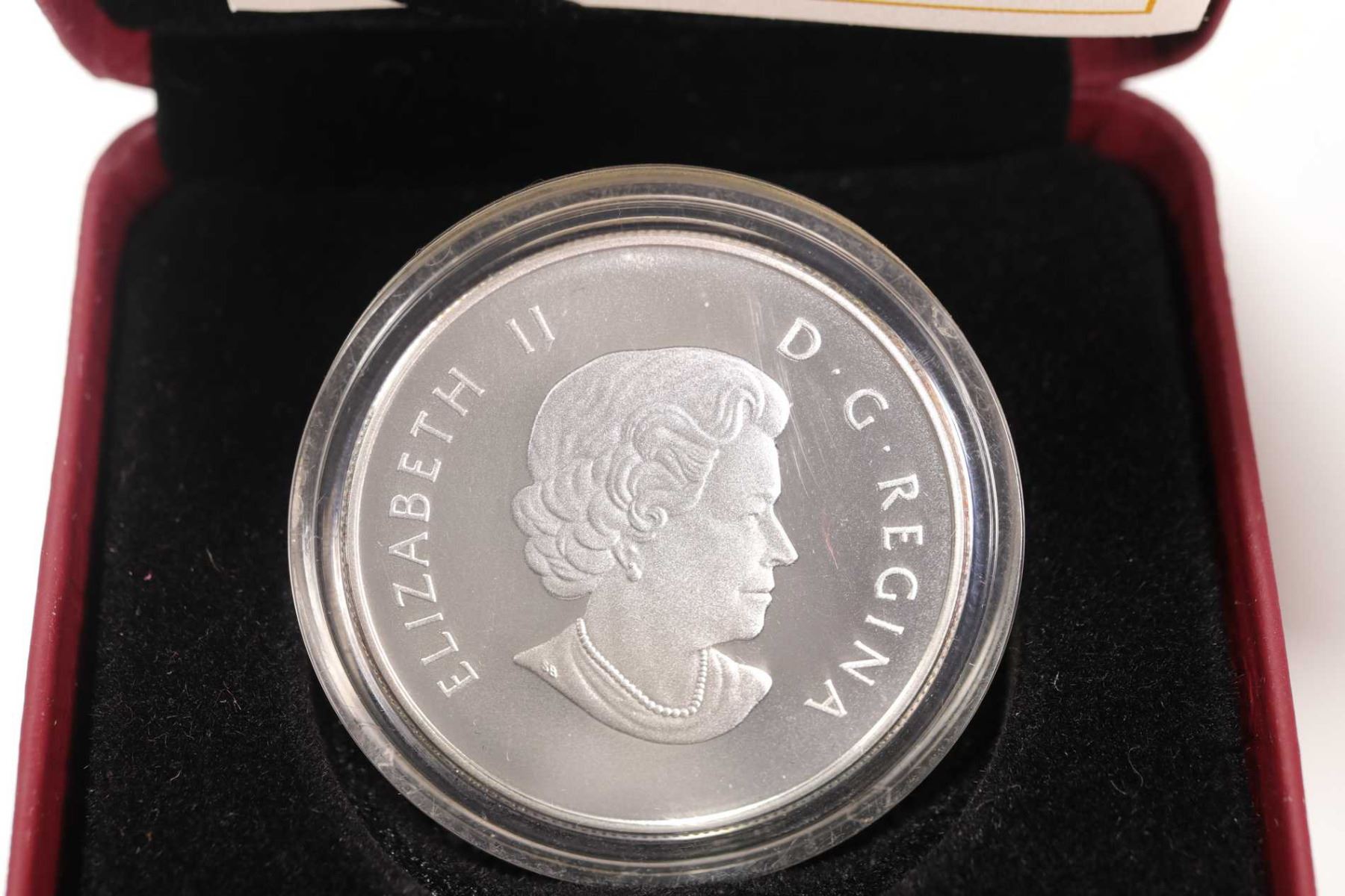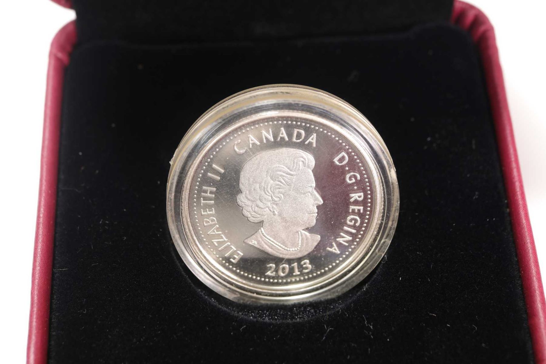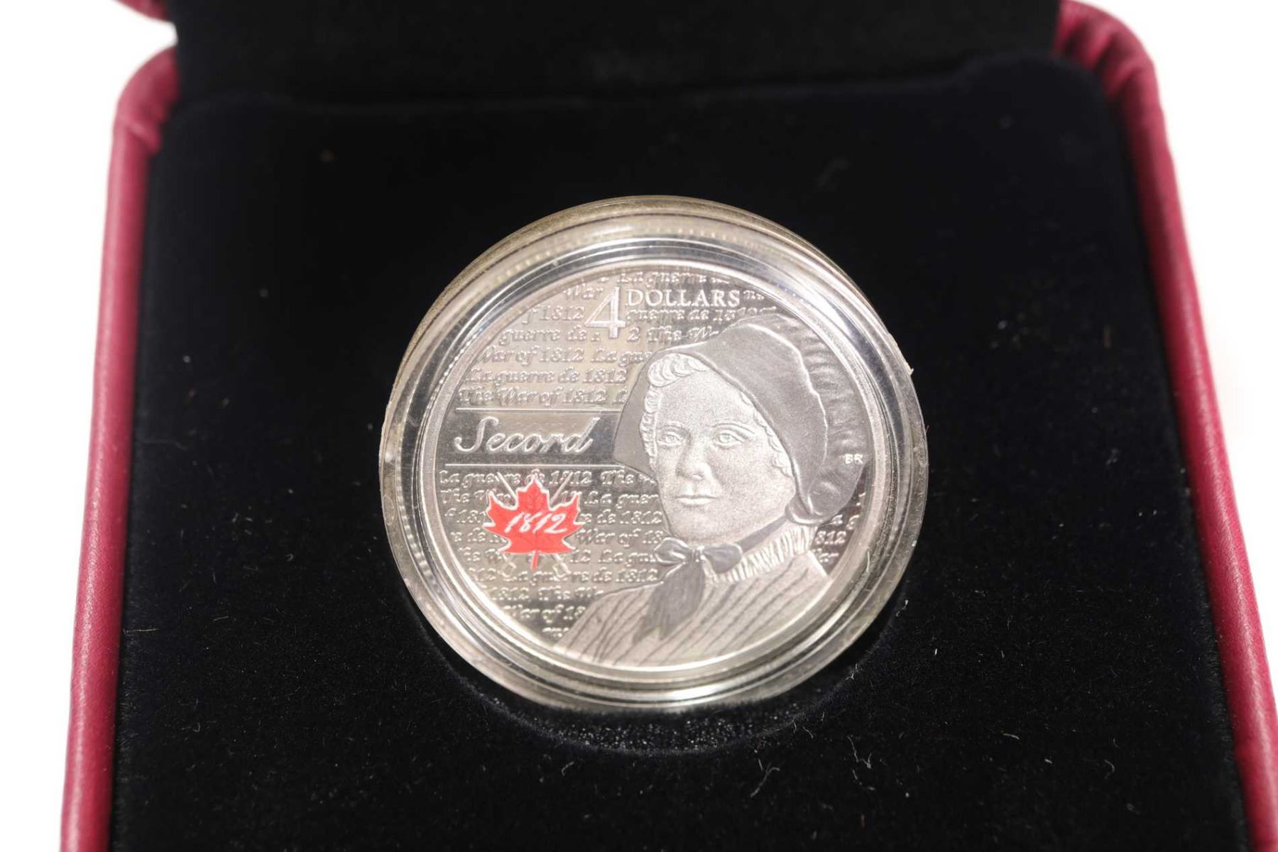 Three cased Royal Canadian Mint collector coins including 2013 "Heroes of 1812-Charles Michel de Salaberry" $20, 99.99% fine silver coin which originally retailed for $49.95, 2014 " Exploring Canada" The Arctic Expedition" $15, .925 sterling silver coin and a 2014 "100th Anniversary of the Declaration of the First World Ward $10, 99.99% fine silver coin