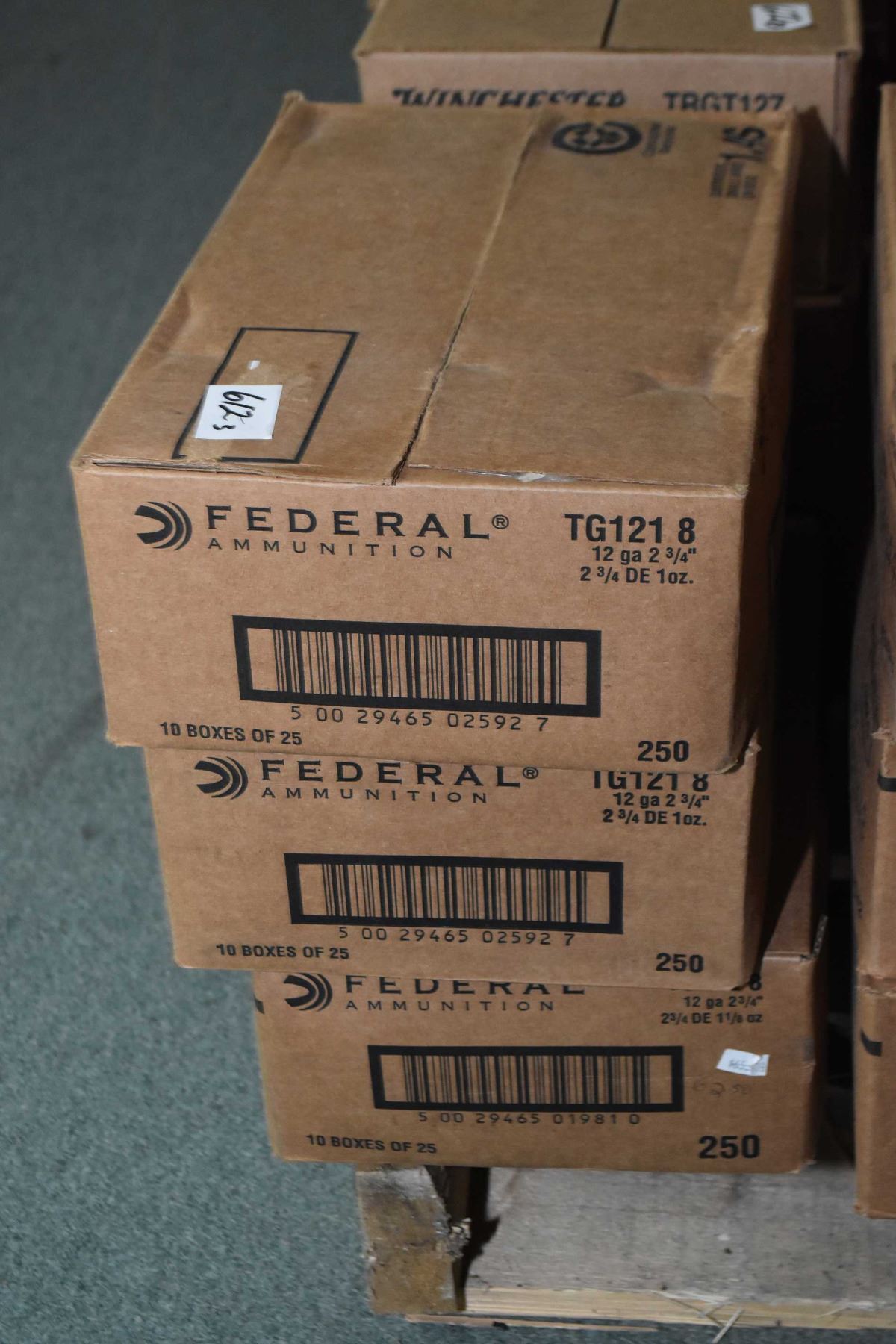 Three cases Lot Fed .12 Ga Shotshells Three cases Lot ; 10 Boxes ( 25 rnds per ) Federal .12 Ga 2 3/4" Shot Shells