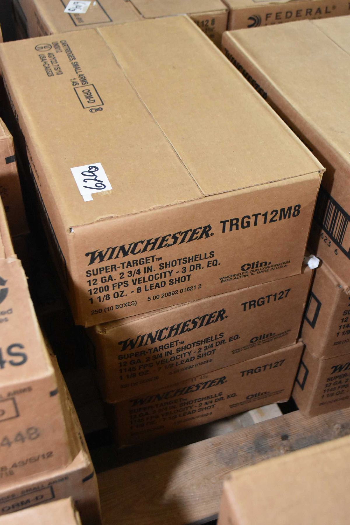 Three cases of shot shells Three case lots: 10 boxes each of Winchester .12 3/4" Super target shot