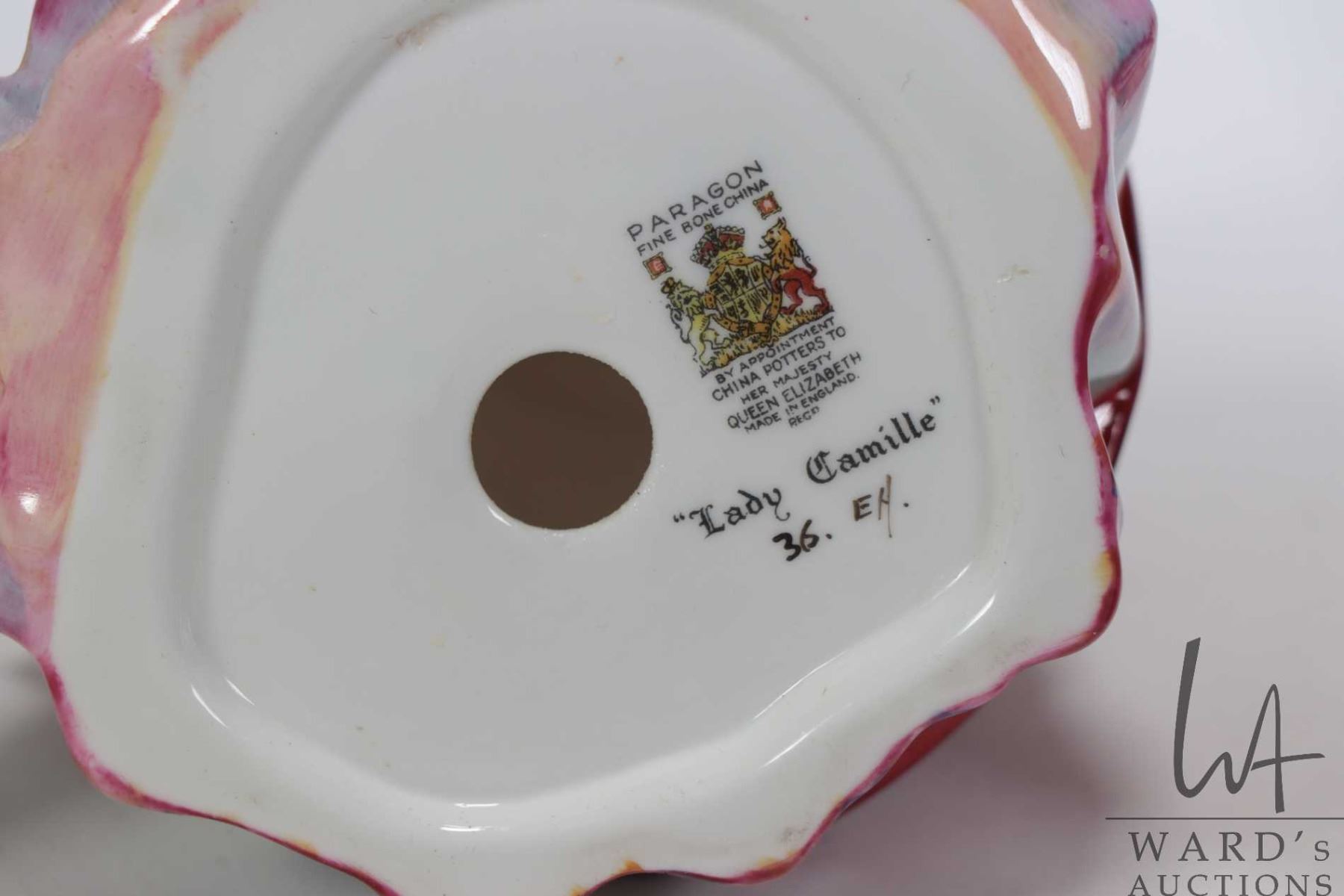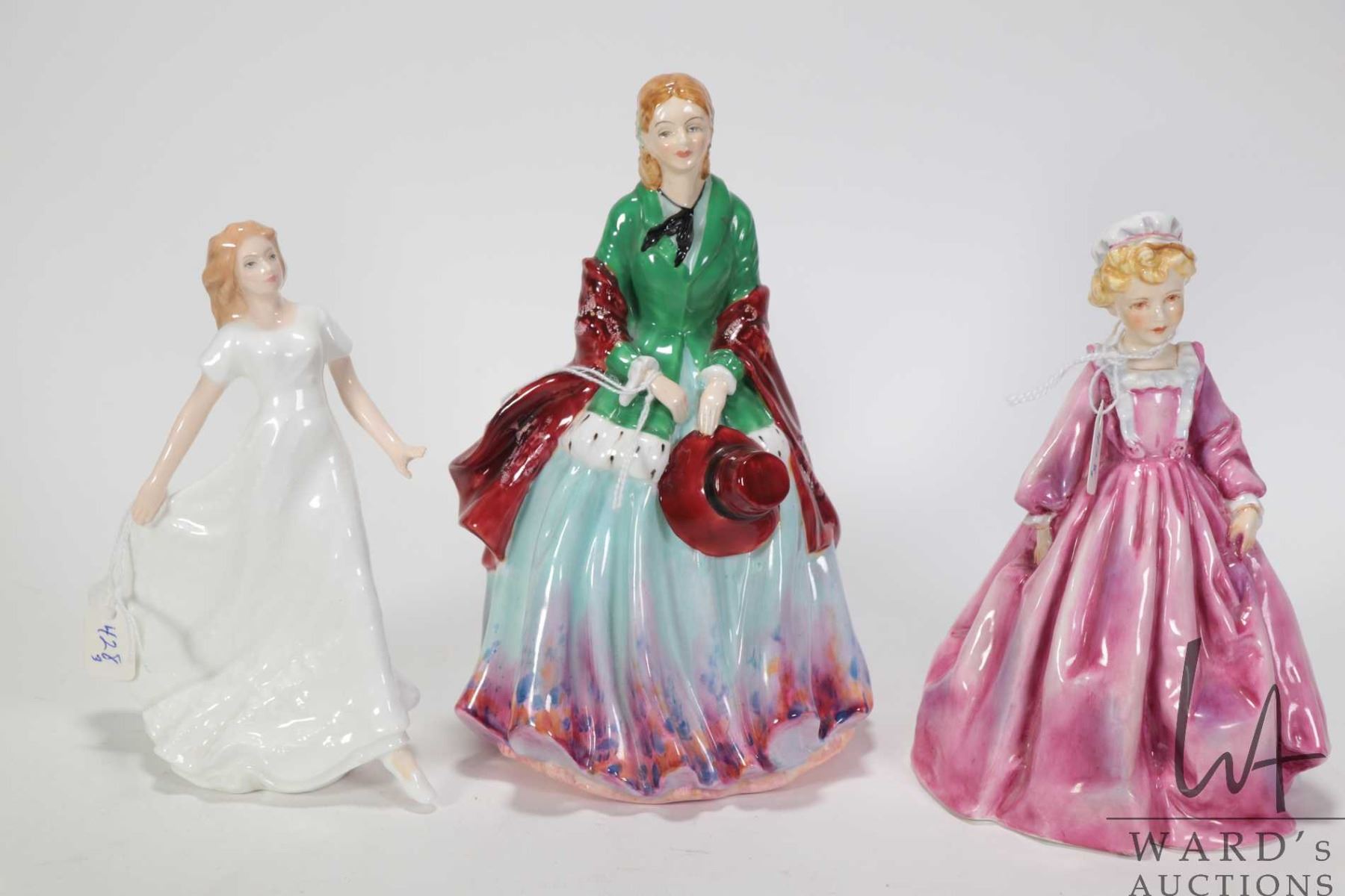 Three china figurines including Paragon "Lady Camille", Royal Worcester RN799938 and a Royal Doulton figurine"Friendship" HN3491