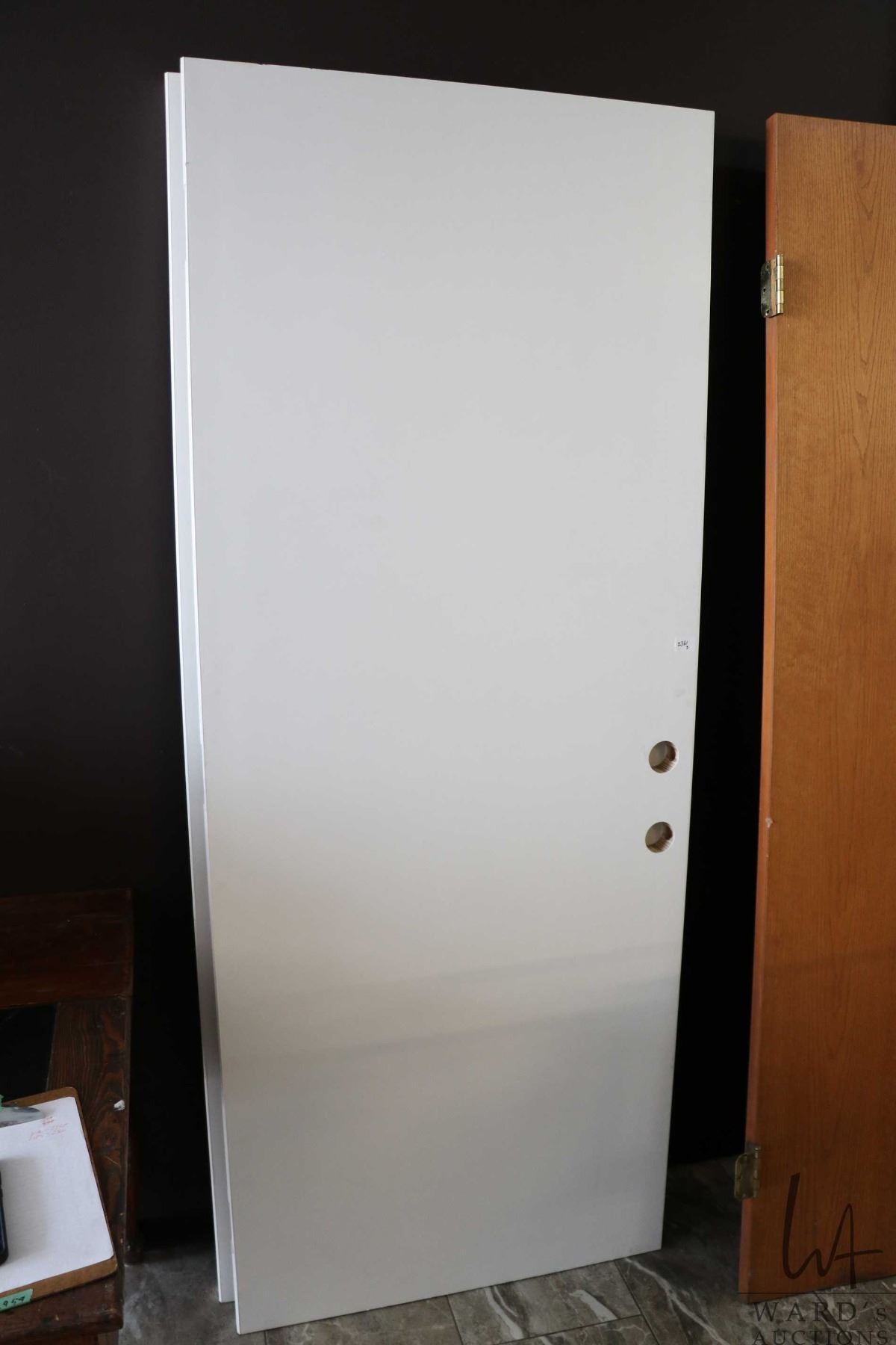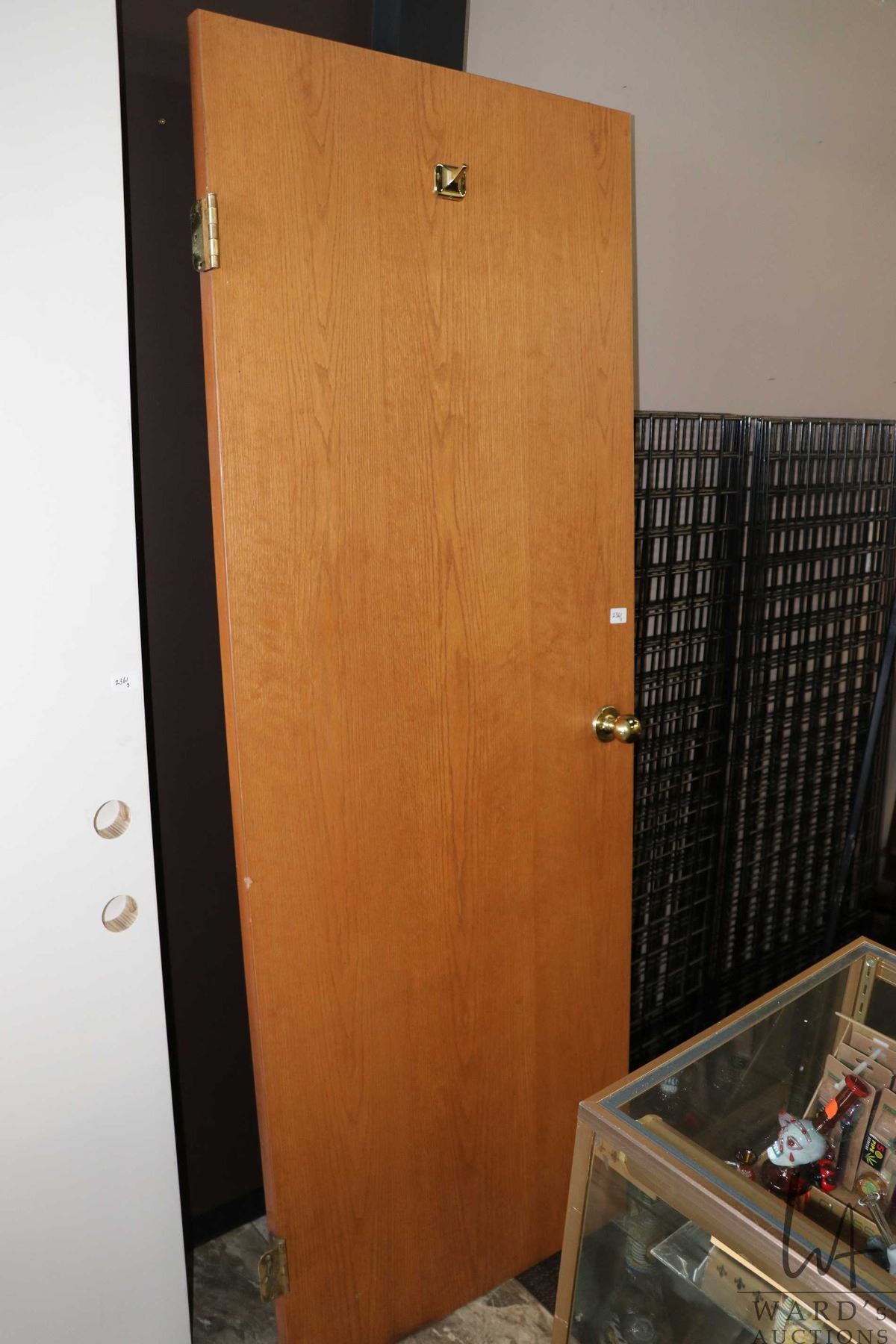 Three doors including two flat surface 32" X 79" solid core doors and a 32" X 19" hollow core door with brass hardware