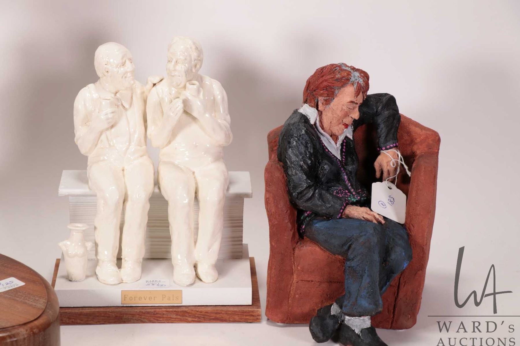 Three figural sculptures including artist made "Forever Pals" 9" in height, a woman sleeping in an a