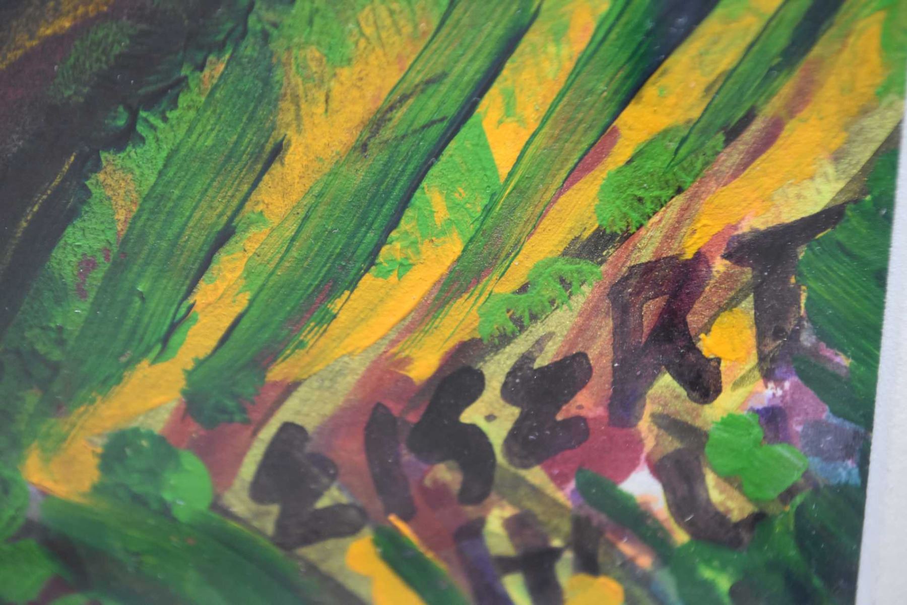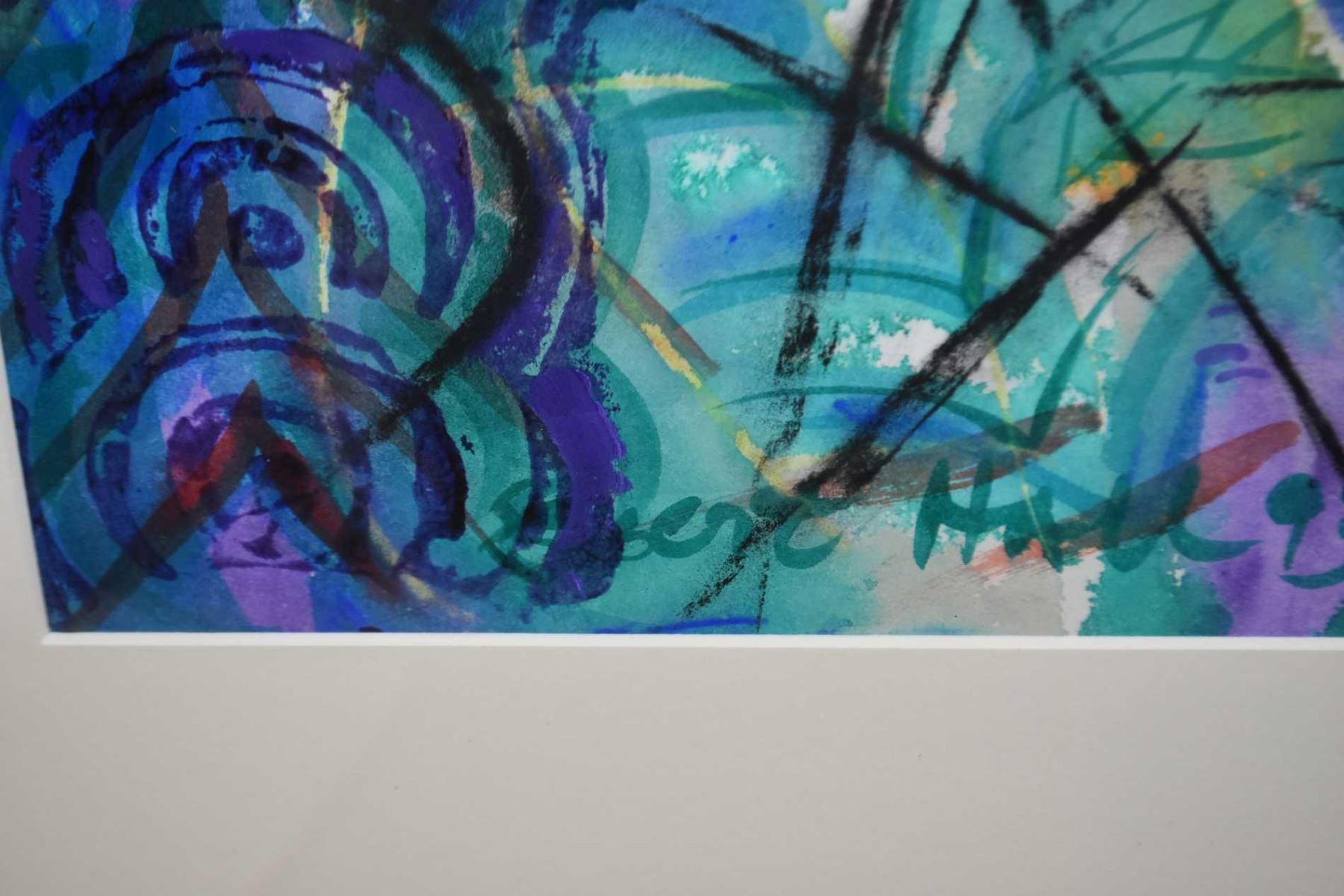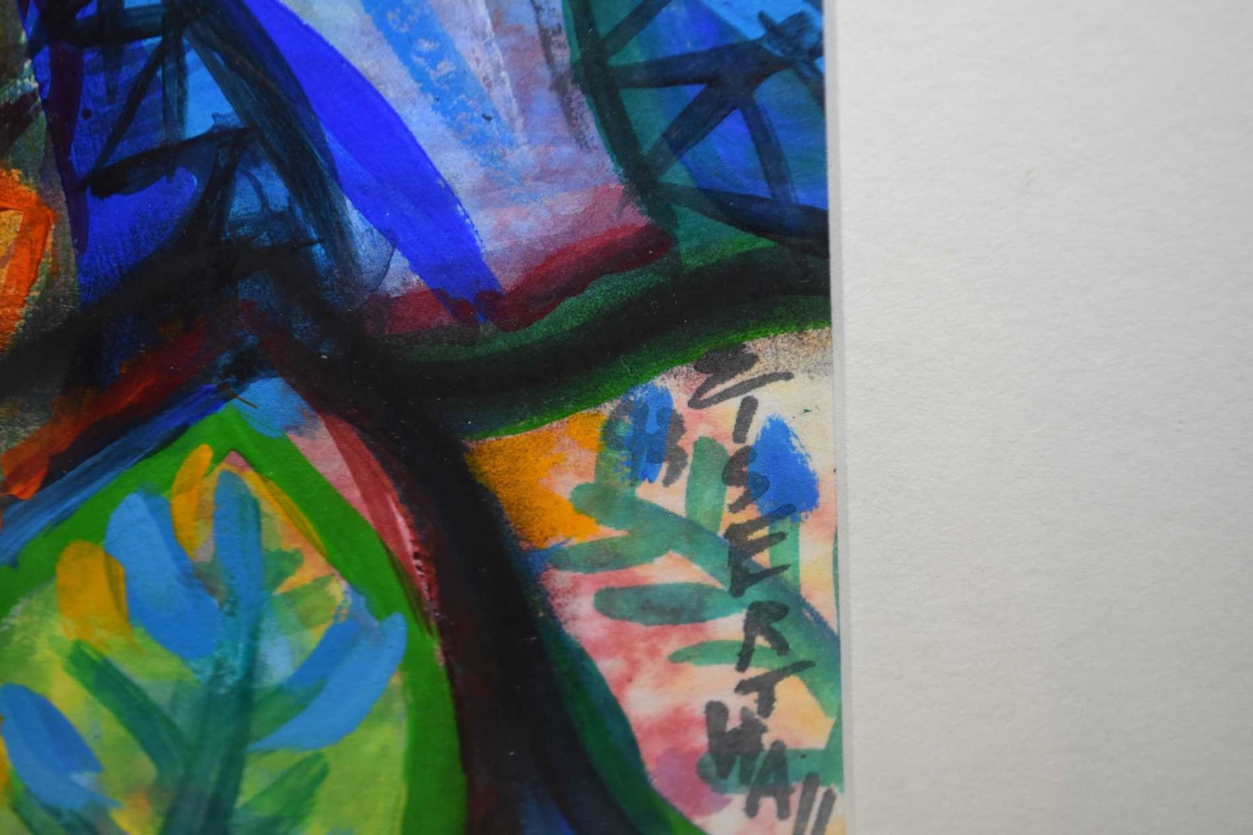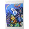 Three framed original mixed media artworks, all with abstract stylized birds, two 13" X 9' and one 20" X 14" all signed by artist Eisert Hall
