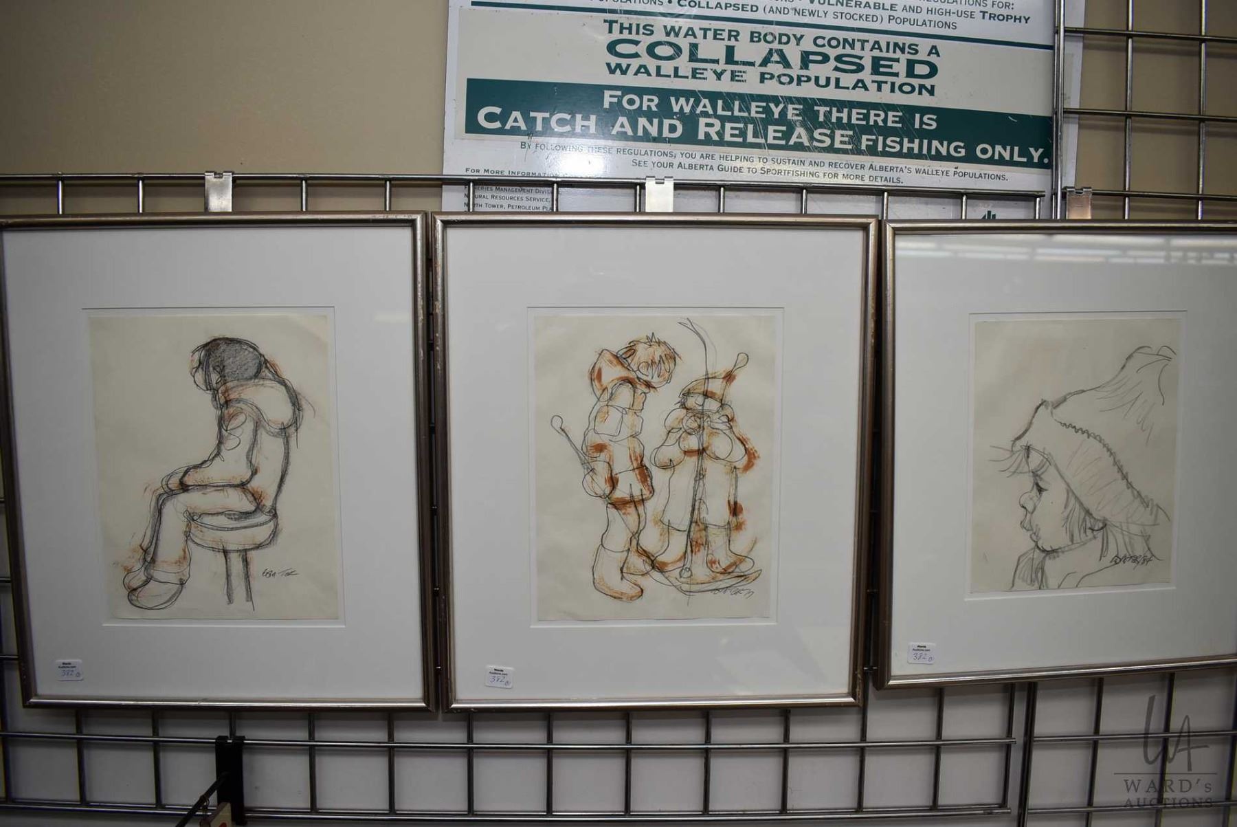 Three framed original pencil drawings including two pencil and watercolour 11" X 8 1/2 " and a 10" X 8", all child themed and all signed by artist Winter (?)
