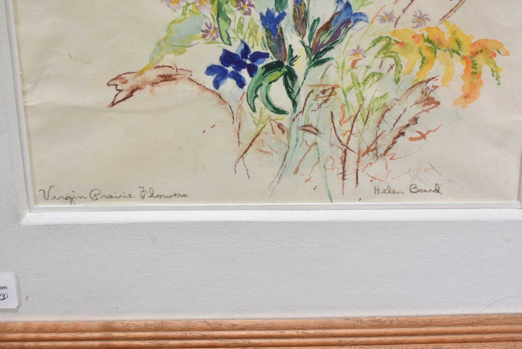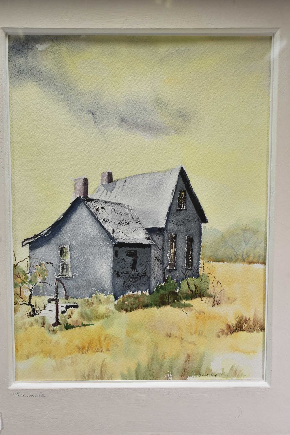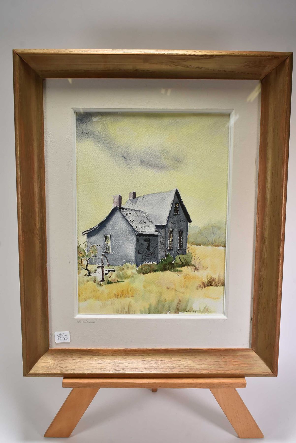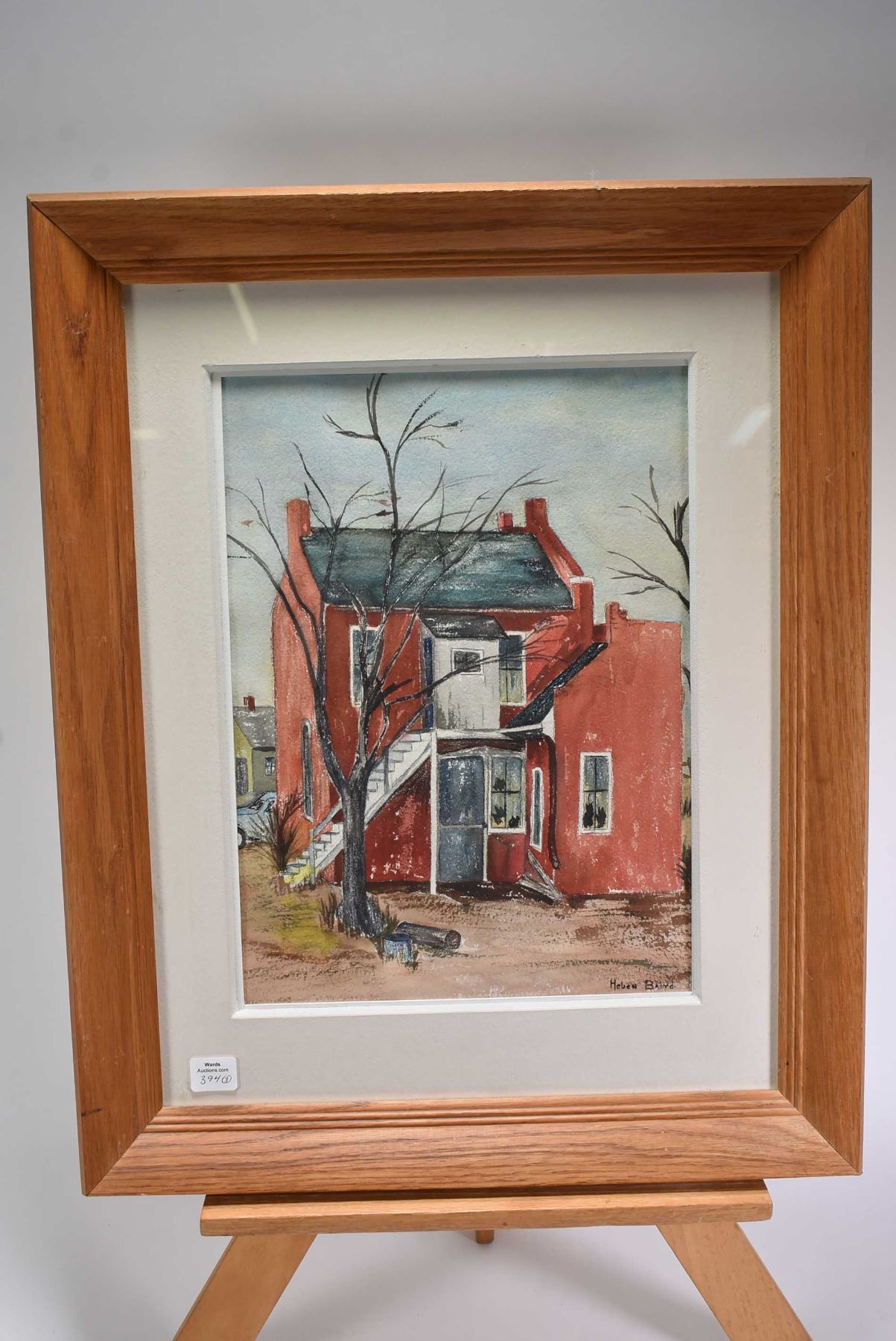 Three framed original watercolour including one still-life and two or rural building, all signed by artist Helen Baird, each approximately 13" X 10"