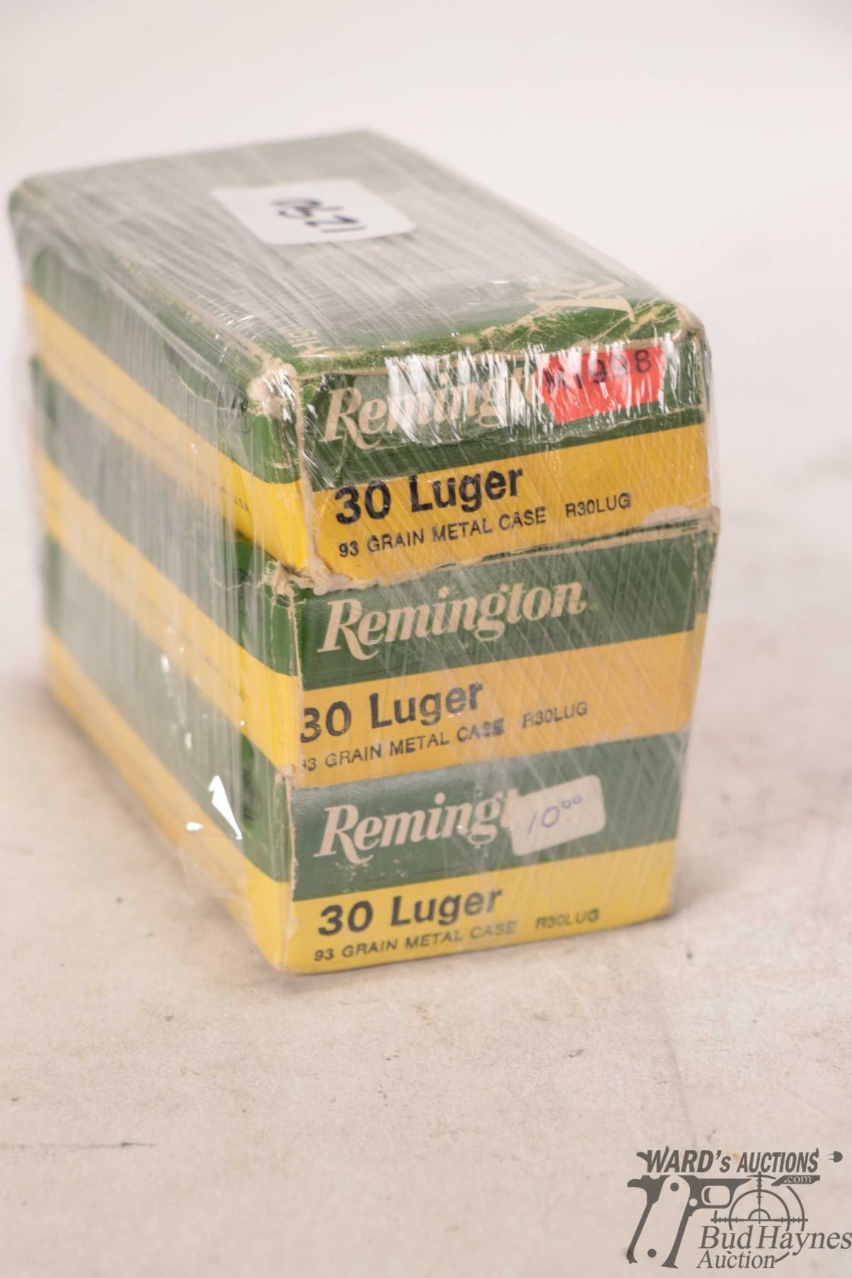 Three full 50 count boxes of Remington 30 luger Three full 50 count boxes of Remington 30 luger (7.65) 93 gr metal case