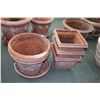 Three matching and one non-matching terracotta planters including 10" and one 14". Note: Not available for shipment. Local pickup only