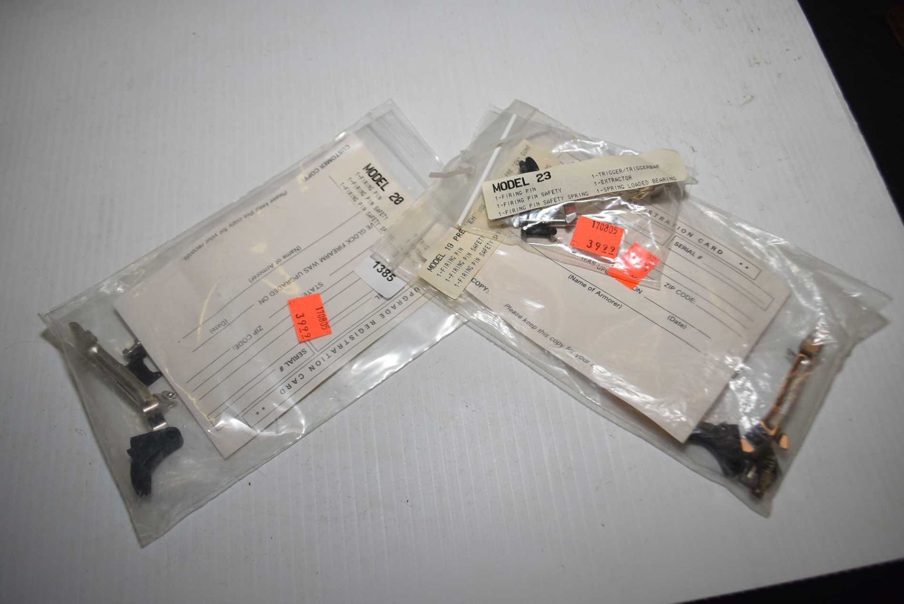 Three new in package Glock trigger kits each including triggers, pins, springs etc. model 19, model 20 and model 23