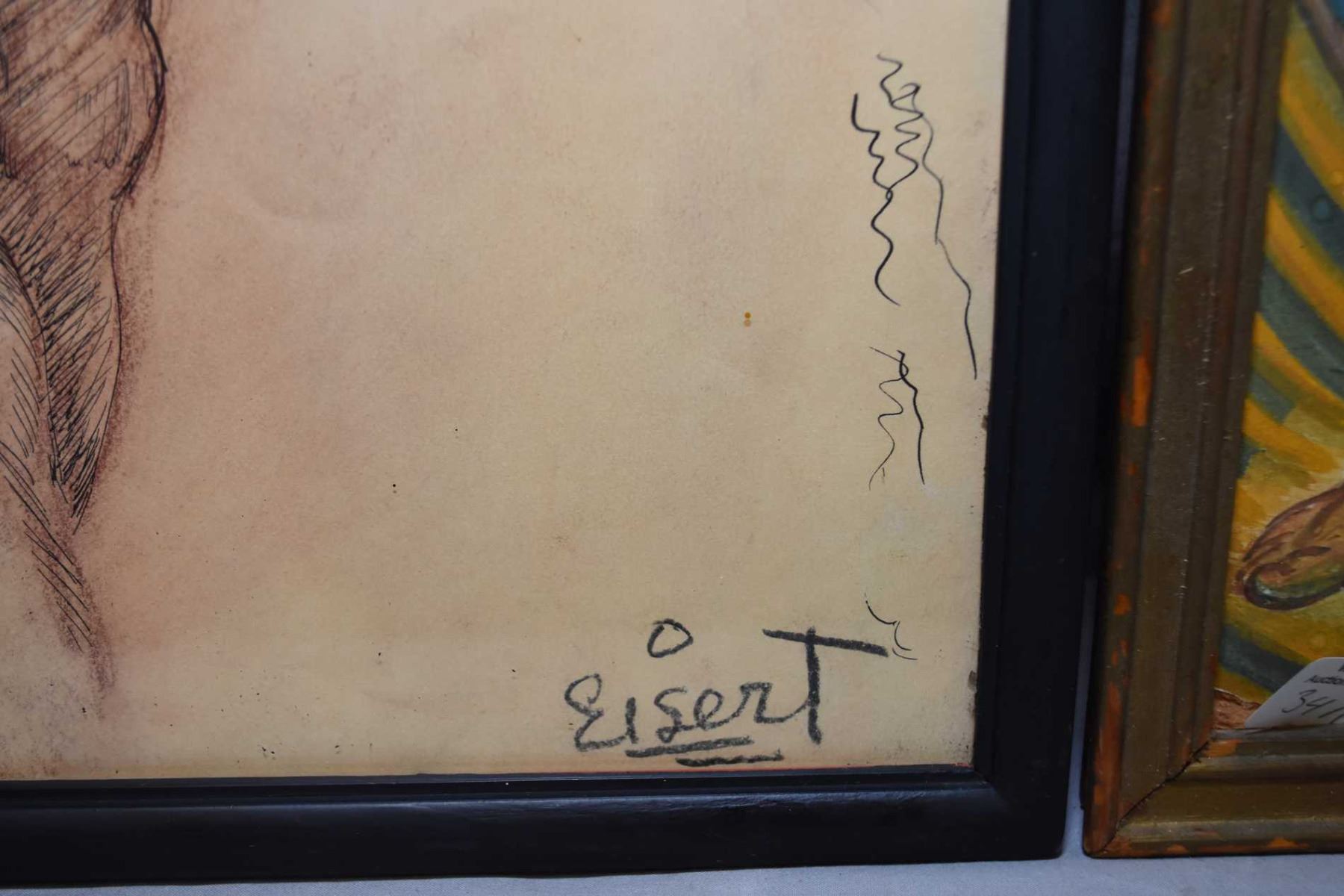 Three original framed artworks including  Study for Doren  signed on verso and artist signed by Gene