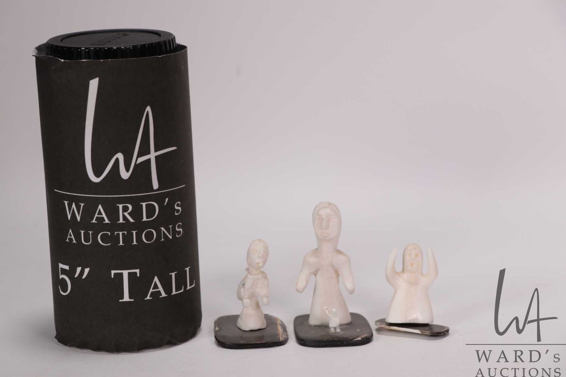 Three pieces of miniature Inuit art including carved figures on slivers of horn, marked Utaqalaq ranging from 1 1/4" to 2"