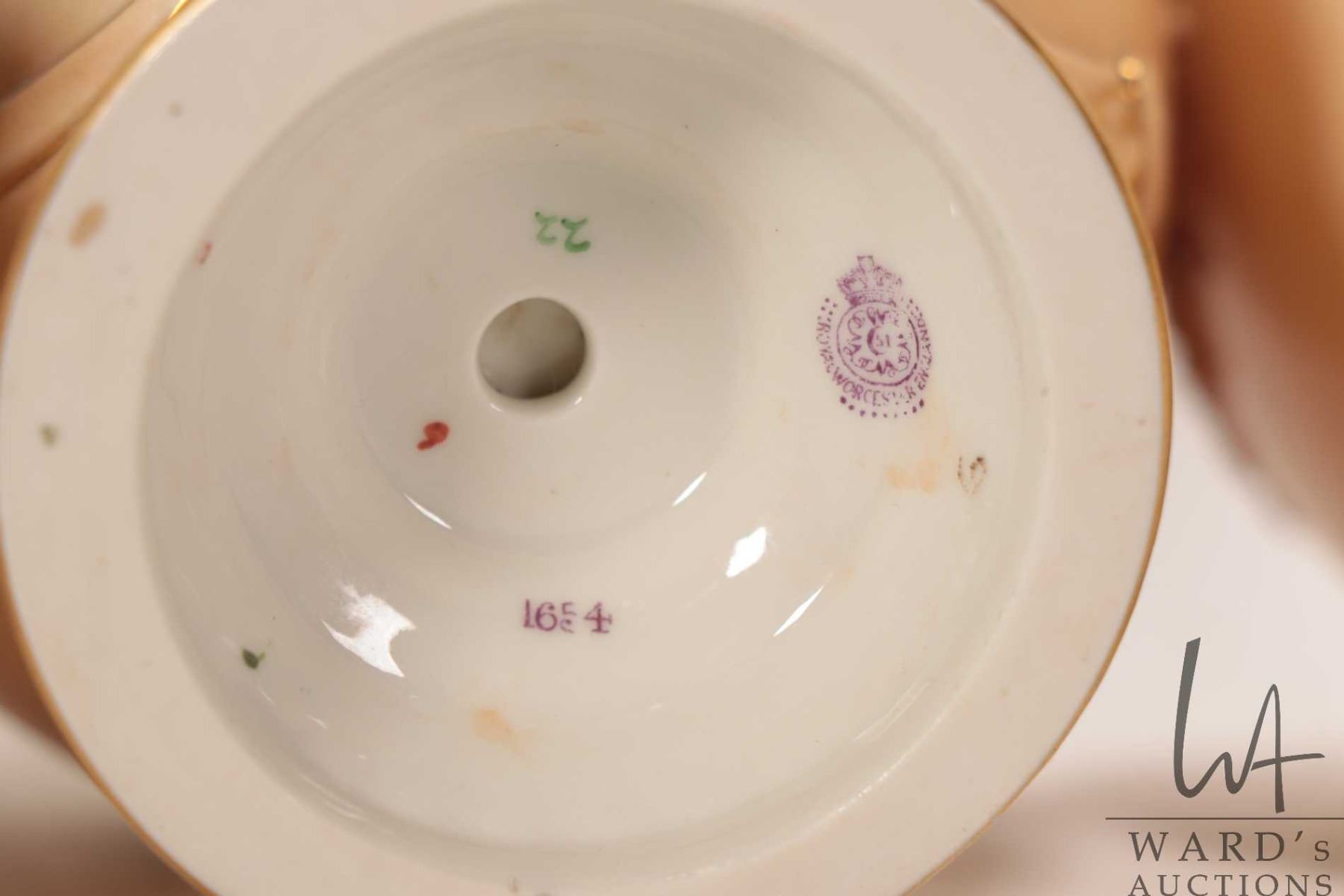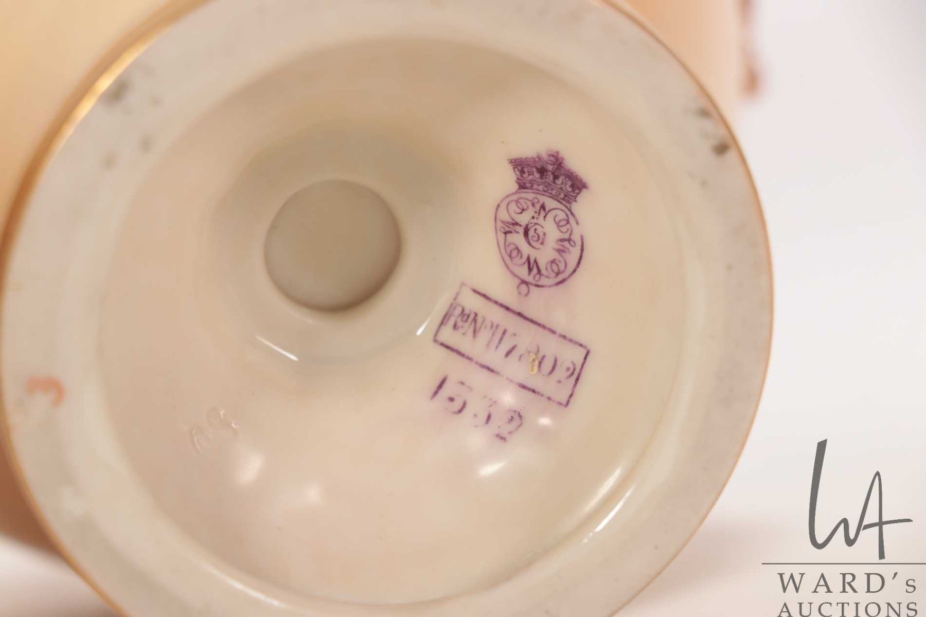 Three pieces of vintage/ antique Royal Worcester blush ivory including 8" vase with handpainted flow