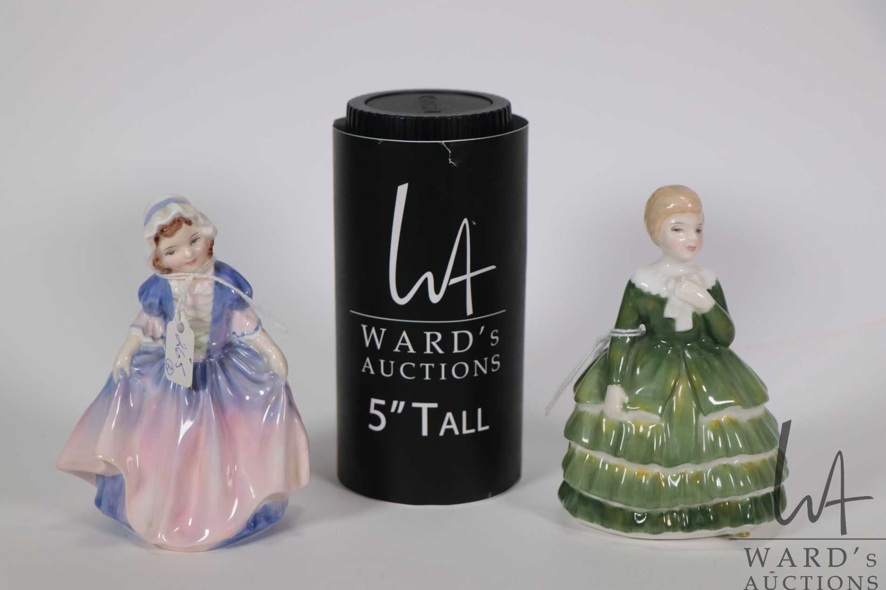 Three small Royal Doulton figurines including Belle HN2340, Dinky Do HN1678 and Goody Two shoes HN2037