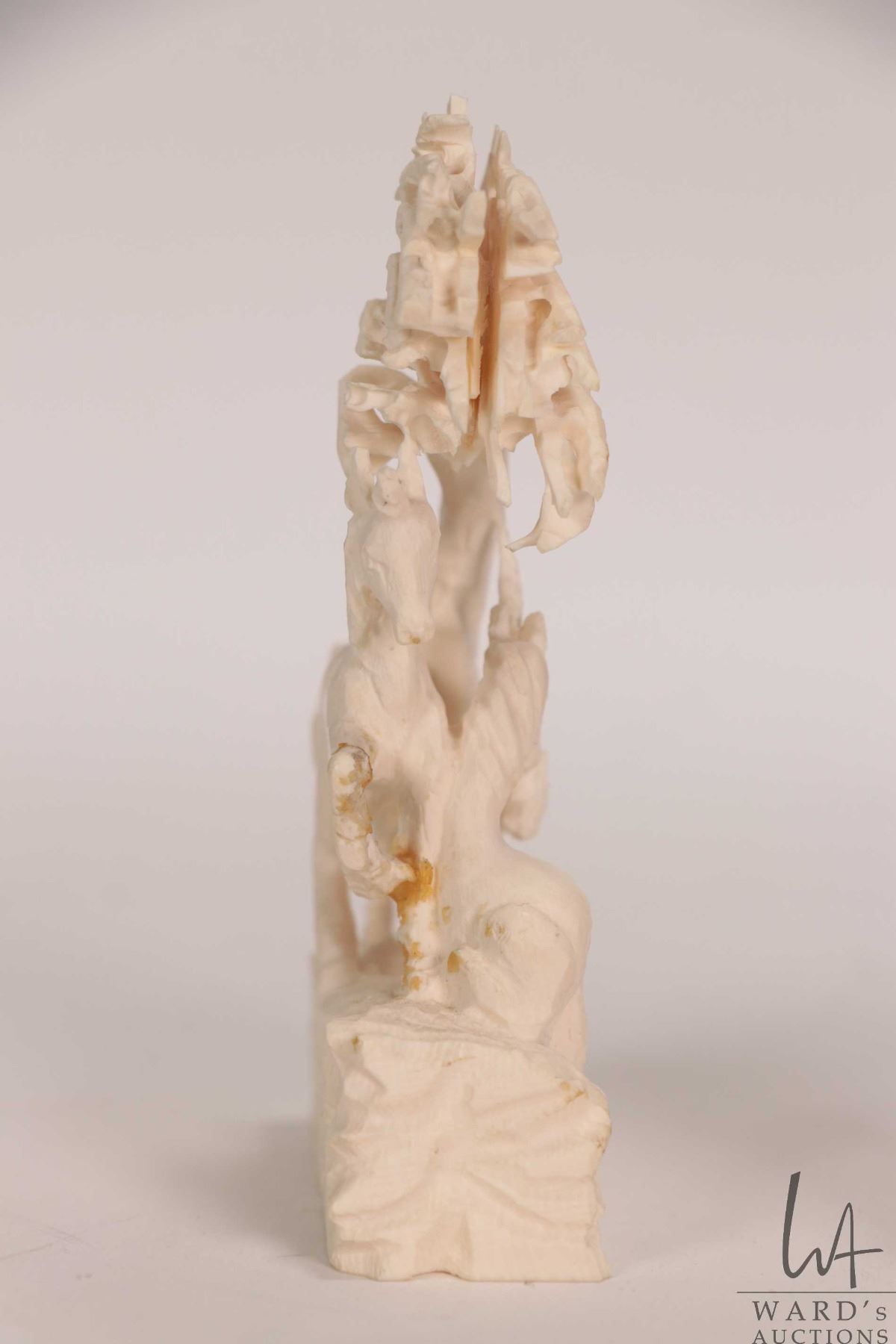 Three small carvings including ivory unicorn figures, note: has been glued 4" in height and a 1" ele