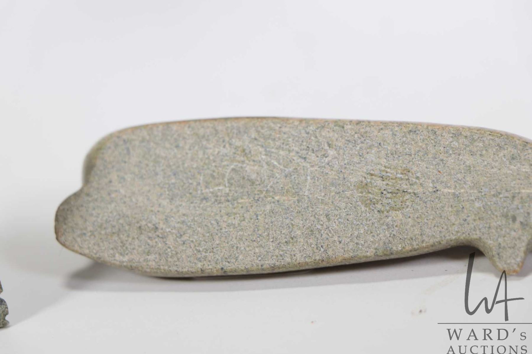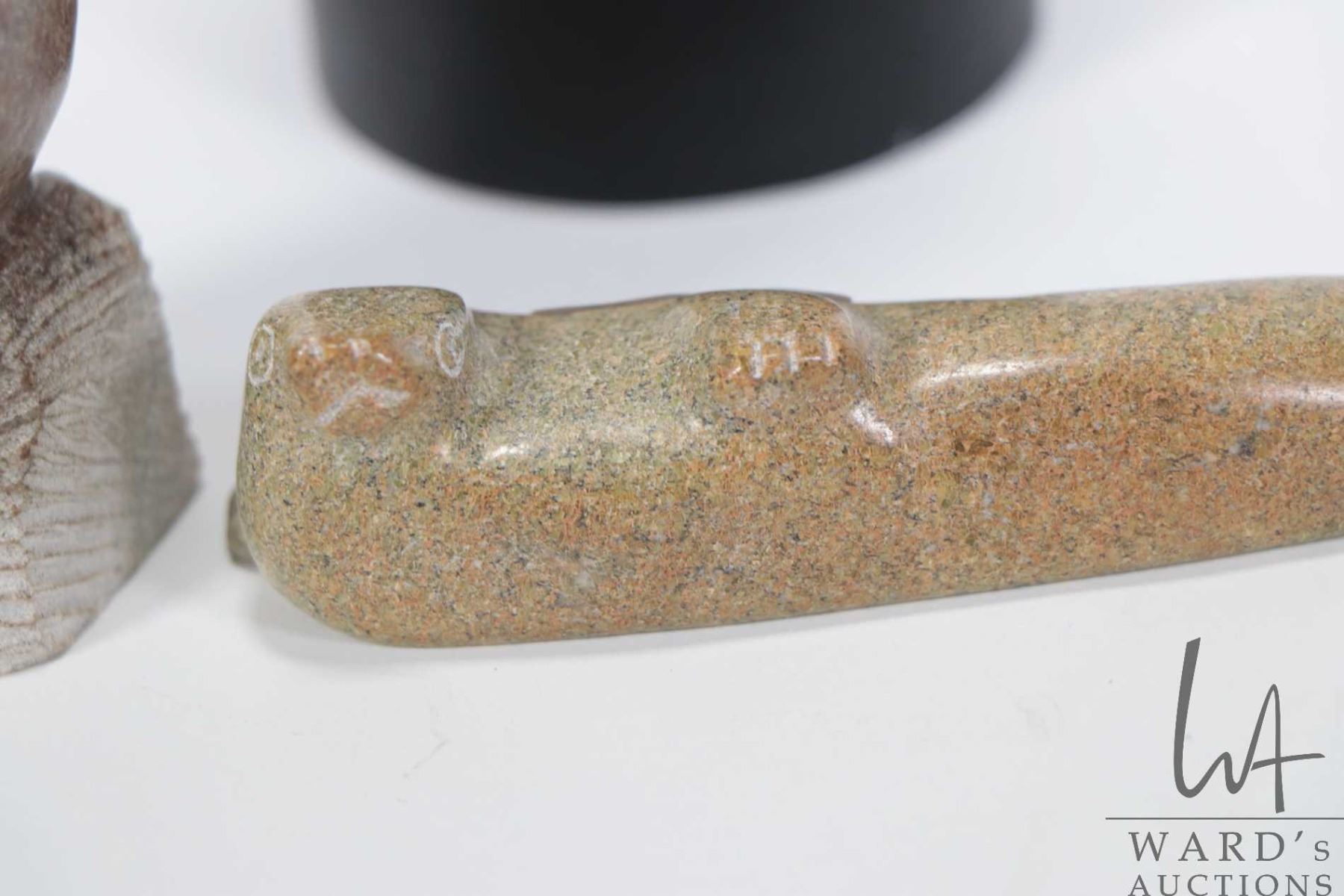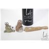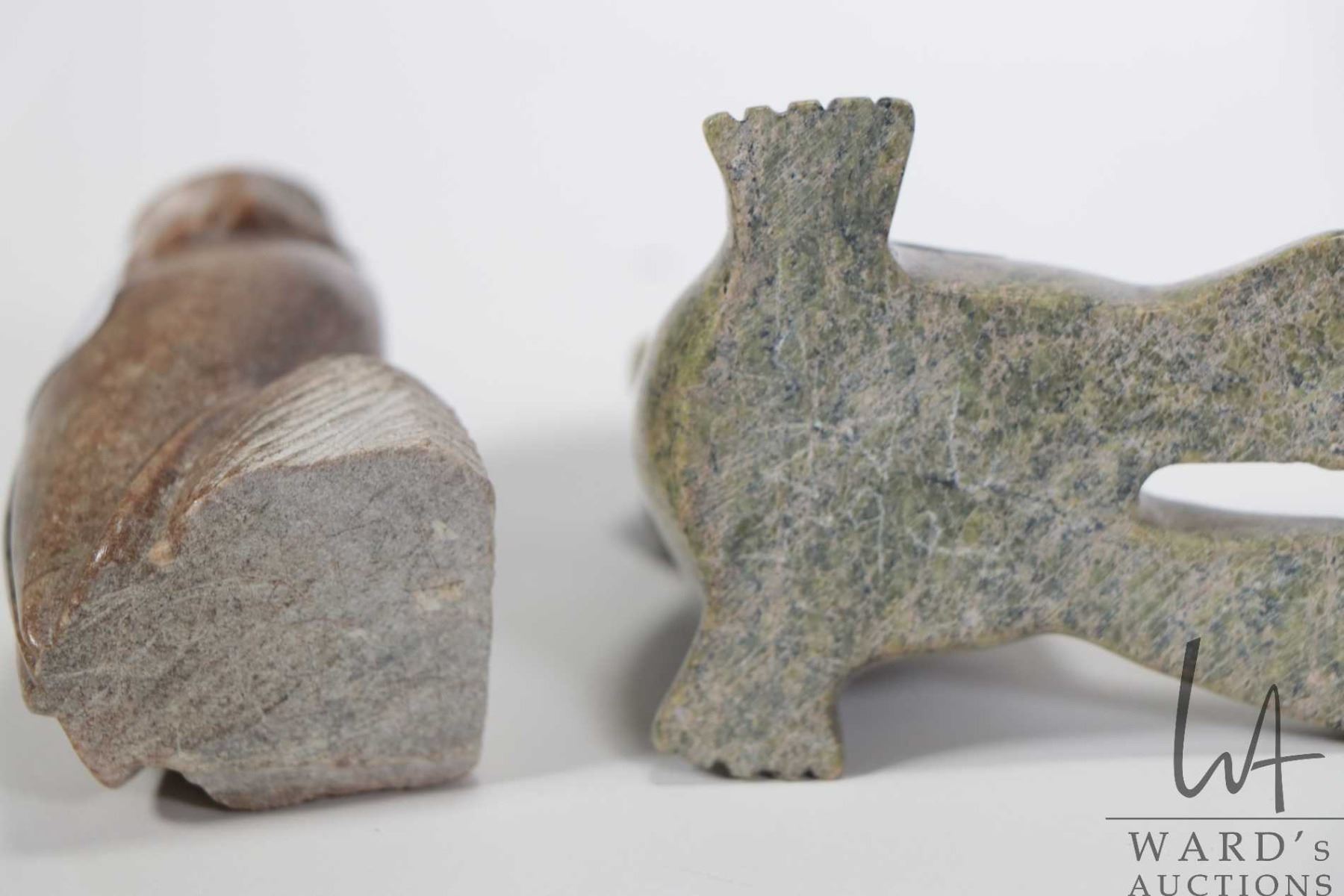 Three small hand carved soapstone figures including two seals and an owl 3" in height