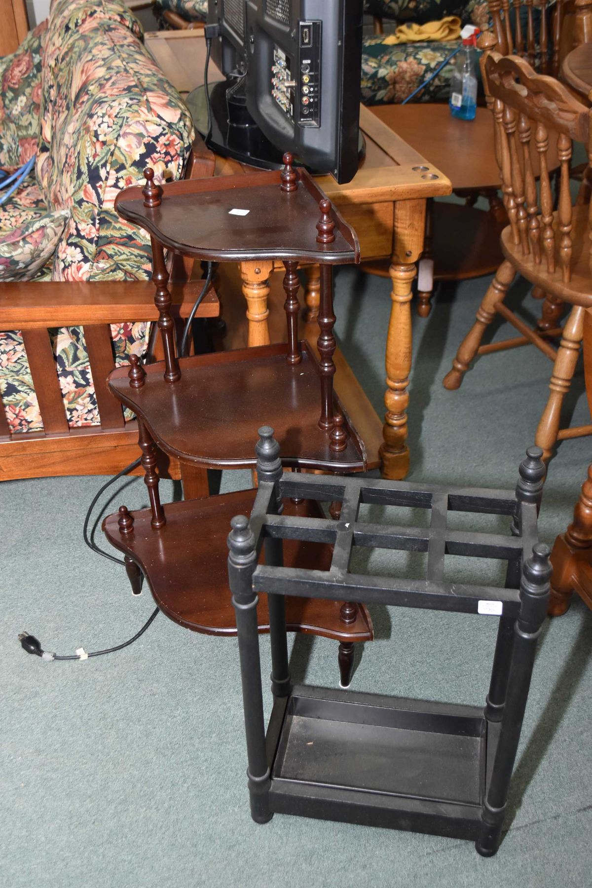 Three tier corner ‚tagŠre and a small stick/umbrella stand with drip tray, both modern