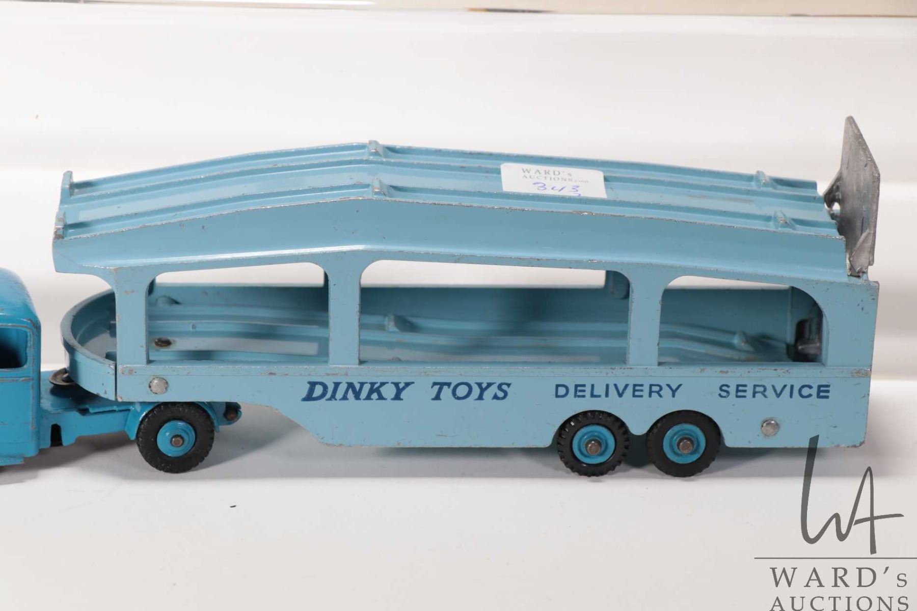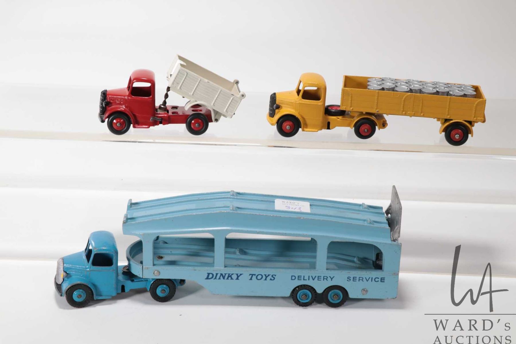Three vintage Dinky's including 410 Bedford tipper, 409 Bedford articulated truck and a 982 Pullmore car transporter
