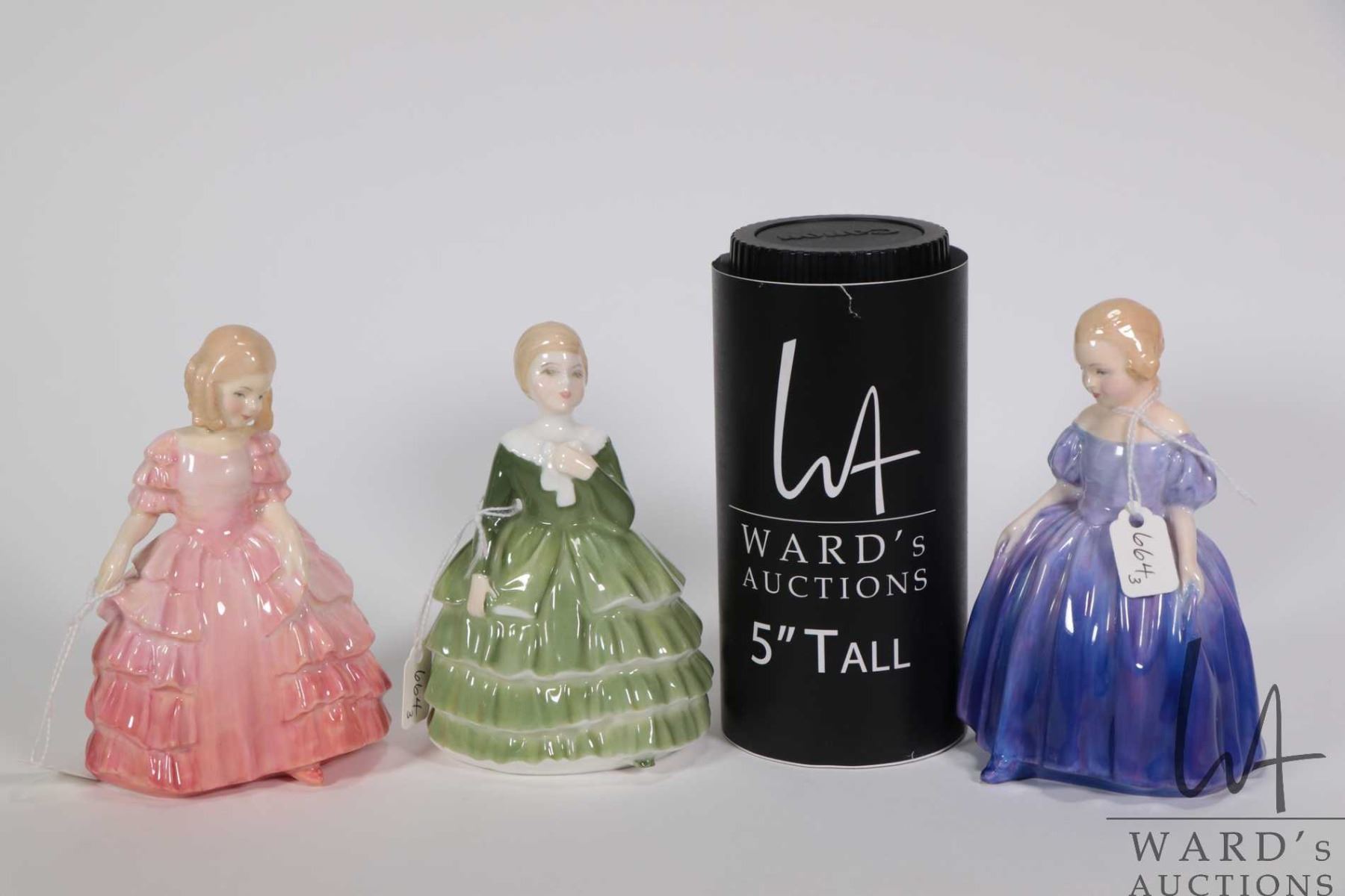 Three vintage Royal Doulton figurines including 4 3/4" Marie HN1370, Rose HN1368 and Belle HN2340