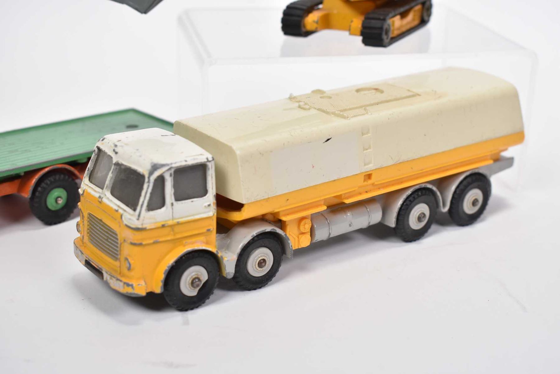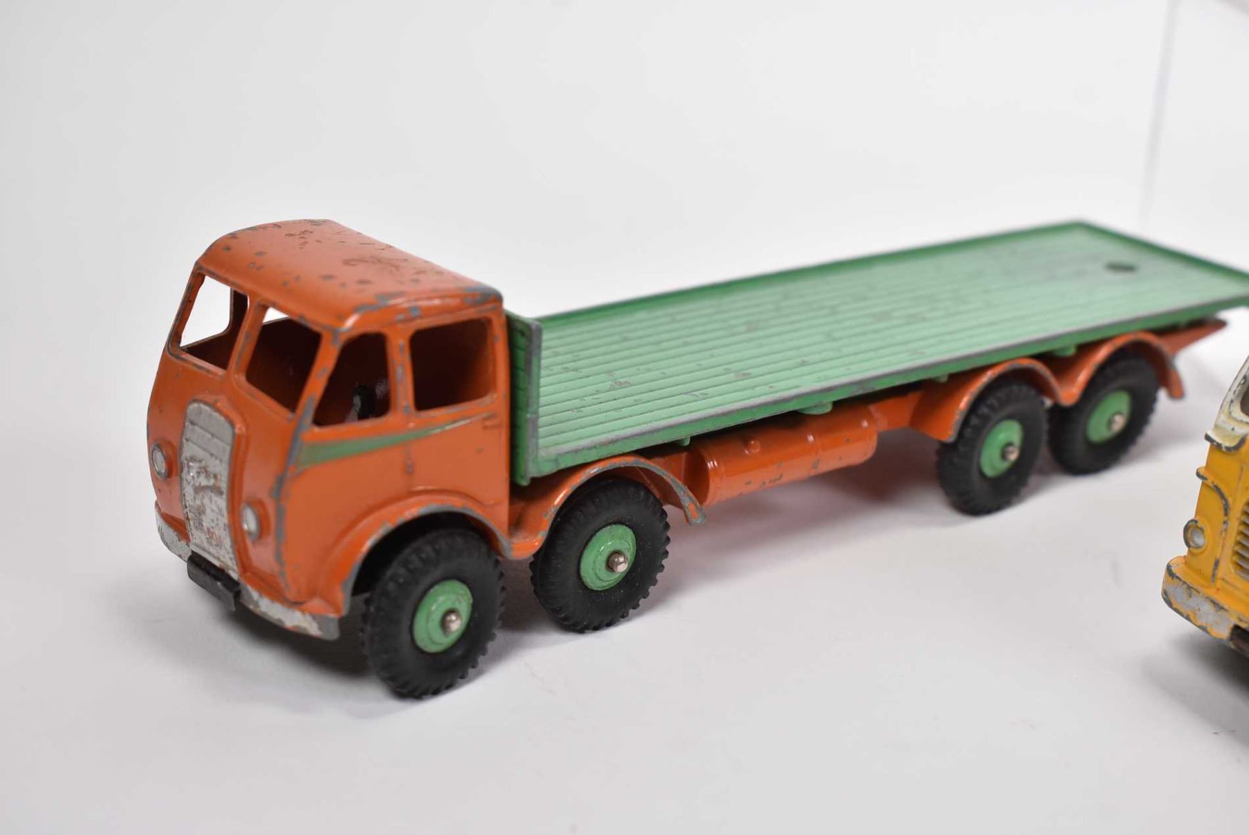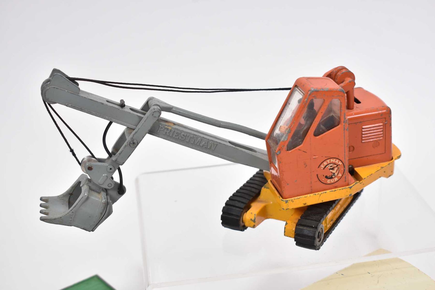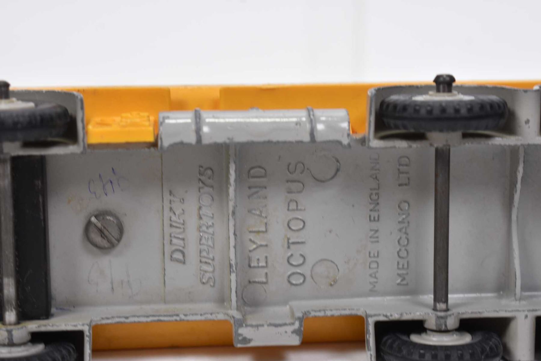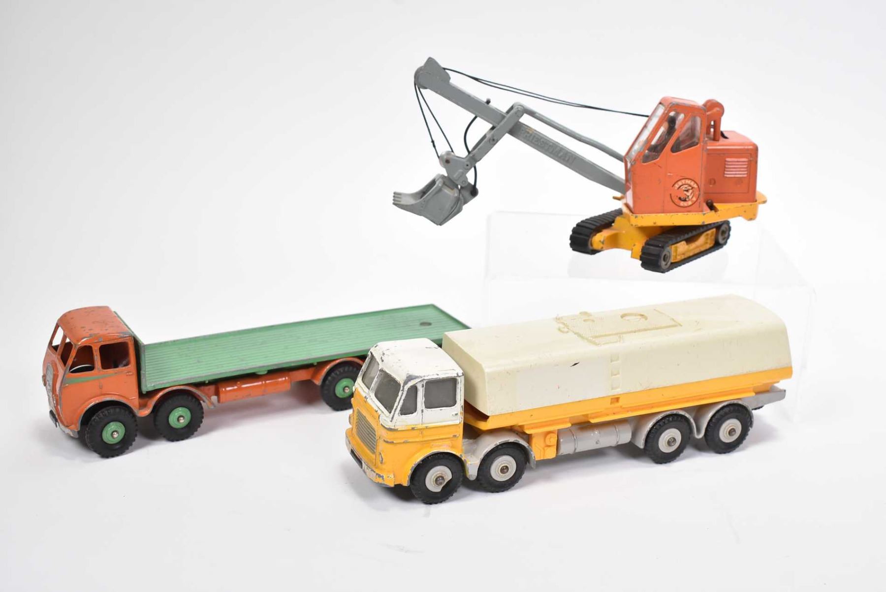 Three vintage die cast toys including two Dinky Supertoys, Leyland Octopus and Foden flat deck plus a Corgi excavator