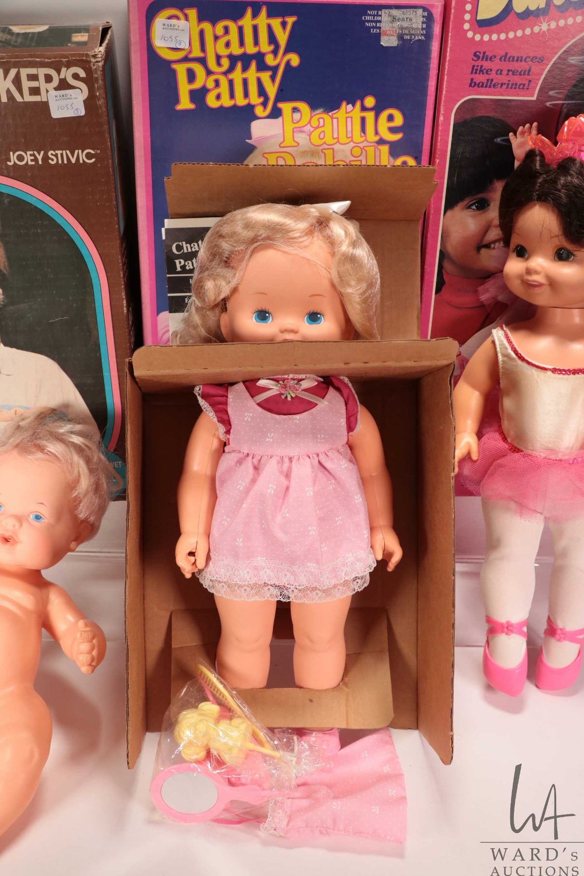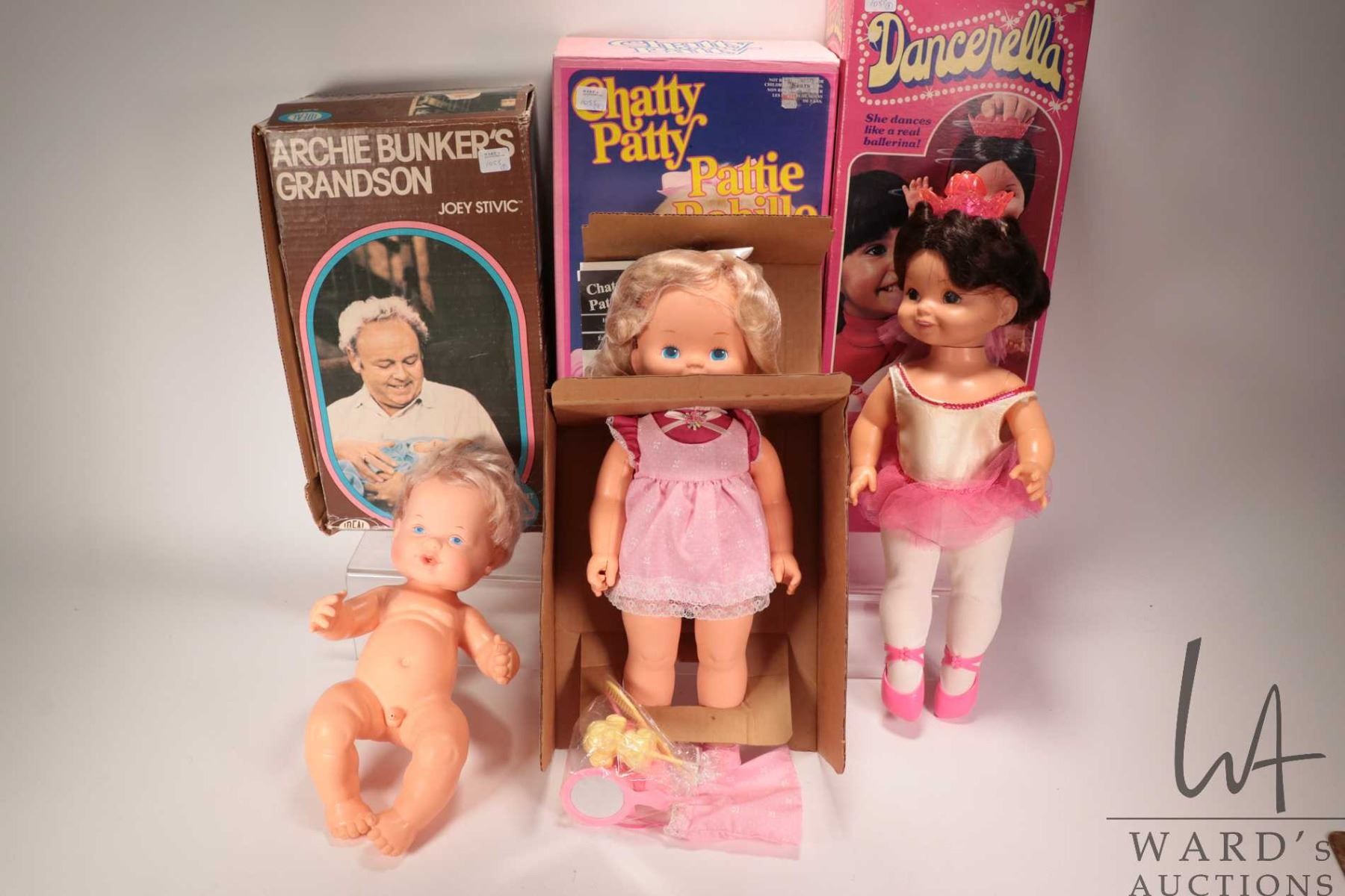 Three vintage dolls including Ideal Archie's Grandson Joey Stivic, Mattel Dancerella and Mattel's Chatty Cathy