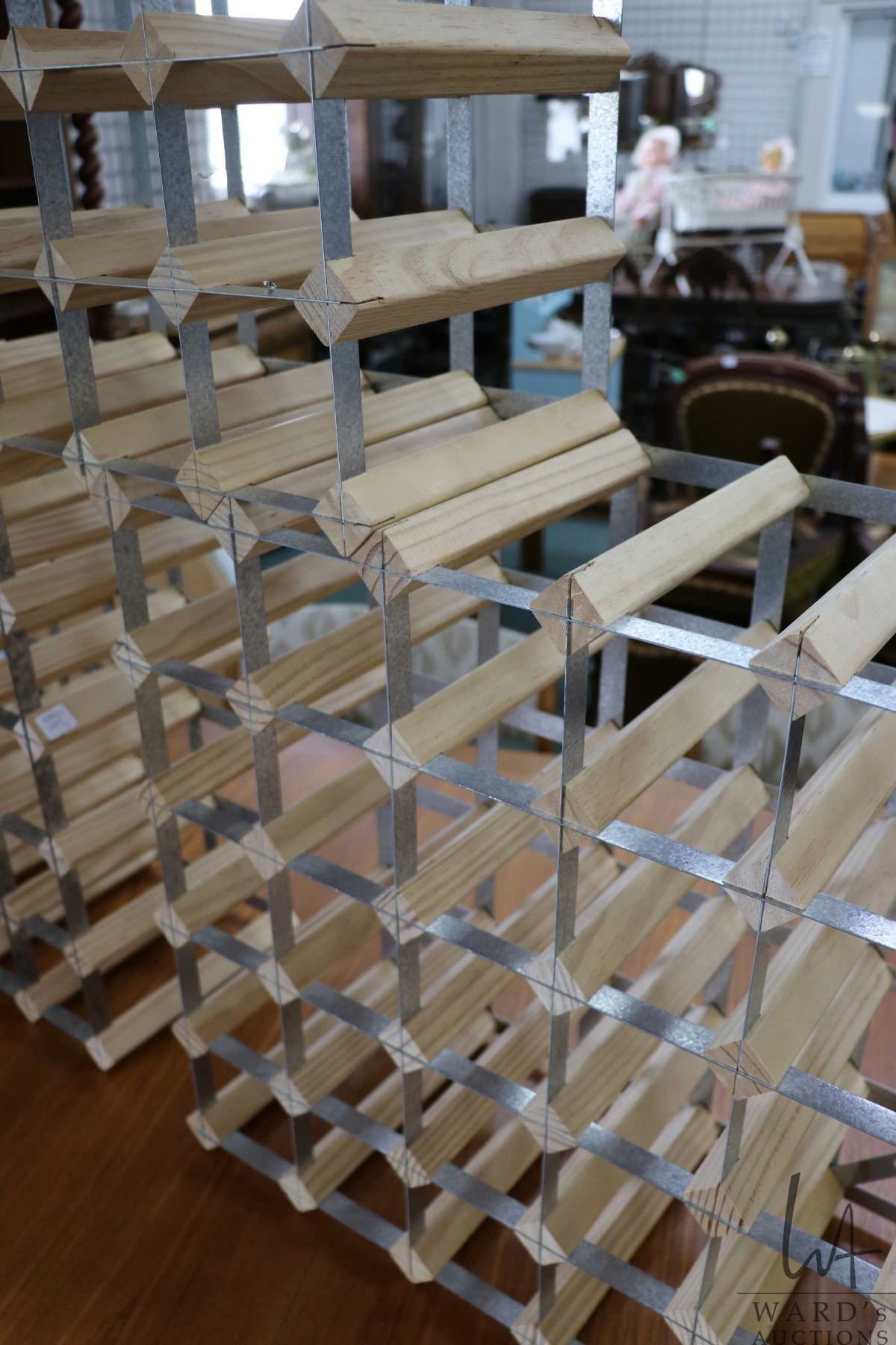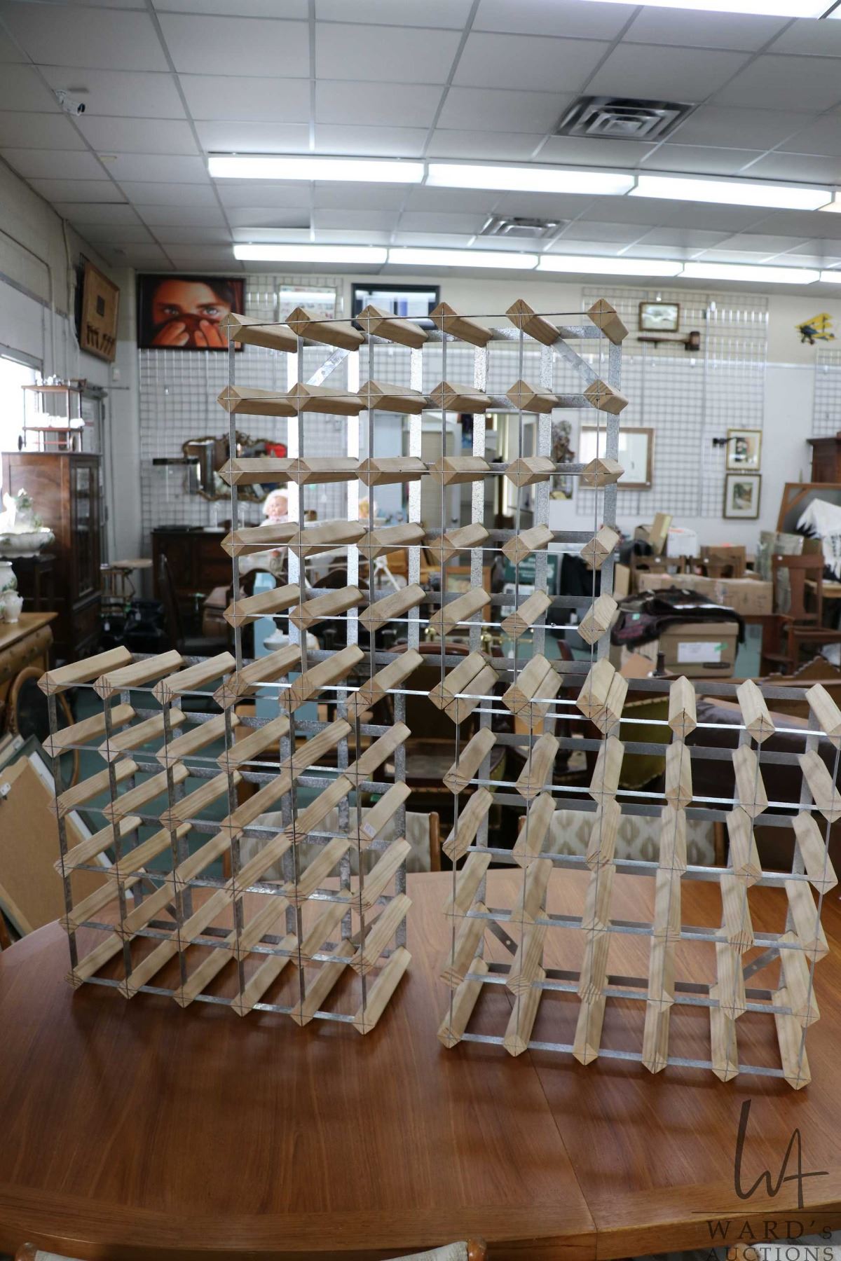 Three wood and metal wine racks, each 20" H X 21" W X 9" D