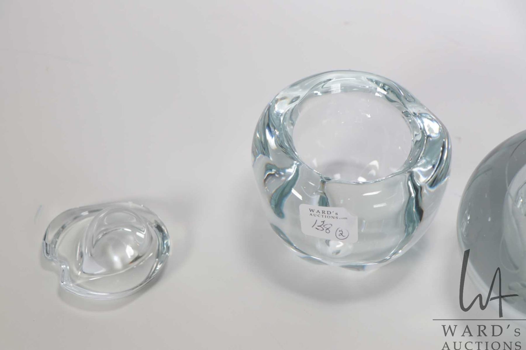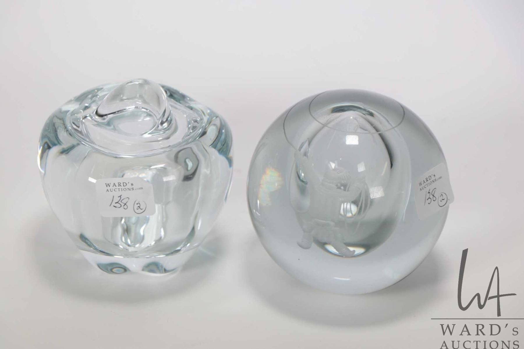 Tiffany & Co. Elsa Peretti apple lidded jam jar and a signed Stromberg etched hunter and stag motif paperweight