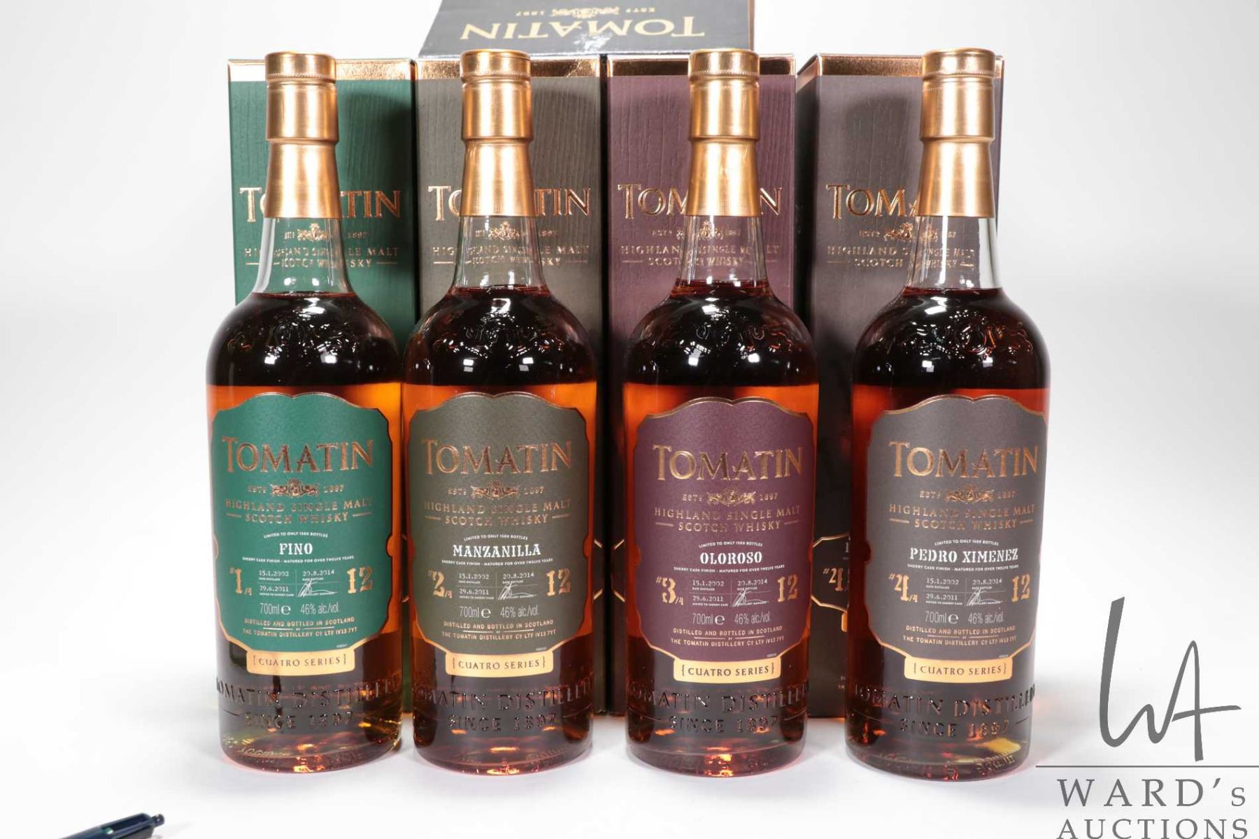Tomatin/ 2002/ Cuatro Series/ 12 Year Old/ X 4 bottles/ btld. 2014/ each 700ml/ 46% ABV No. 1 - Fino Finish- LE of 1500 No. 2 - Manzanilla Finish- LE of 1500 No. 3 - Oloroso Finish- LE 1500 No. 4 - Pedro Ximenez Finish - LE 1500