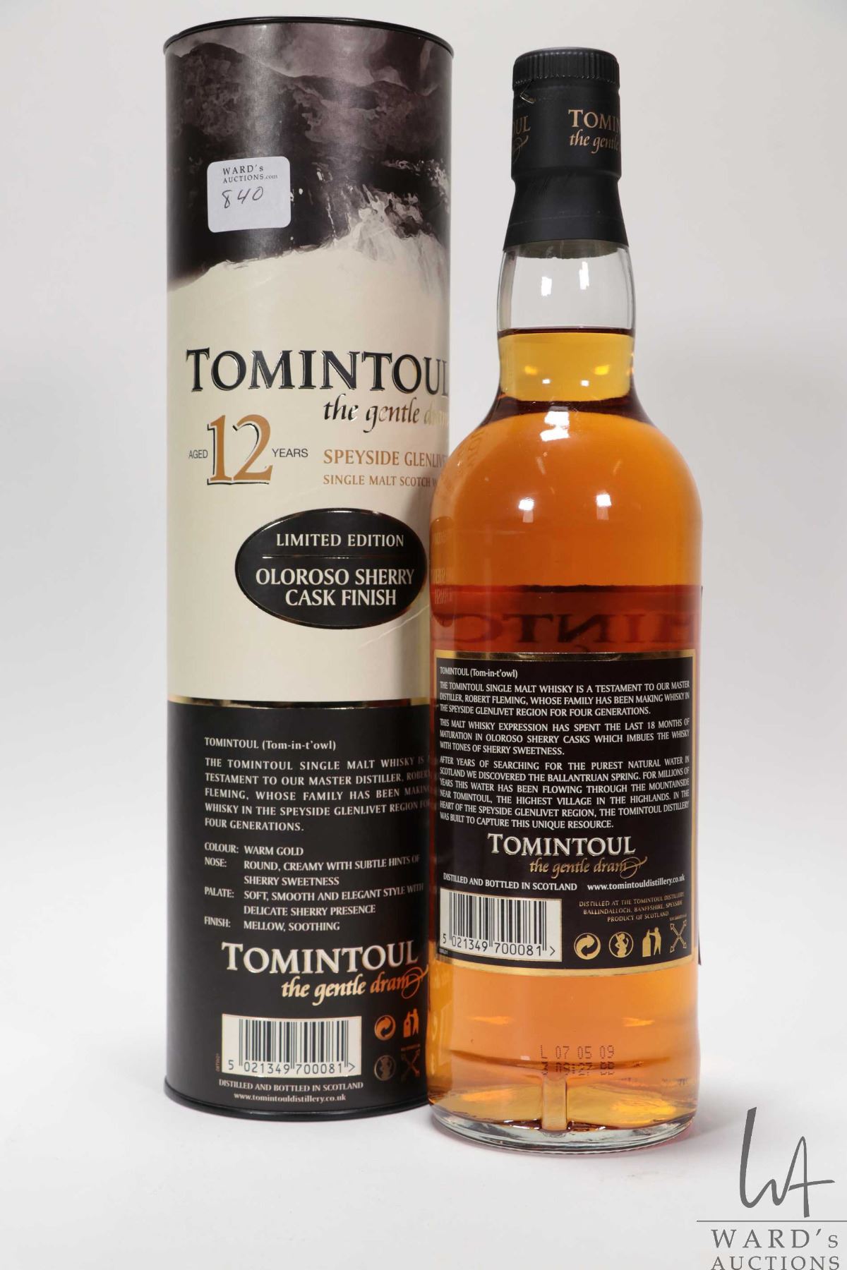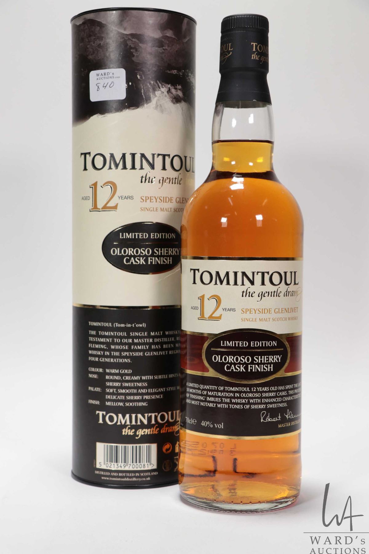 Tomintoul/ 12 Year Old/ Highland Single Malt Scotch Whisky/ Oloroso sherry cask finish / LE/ 700ml/ 40% ABV NOTE: Alcohol cannot be insured by any courier in Canada. Local pick up recommended. Canadian bidders only
