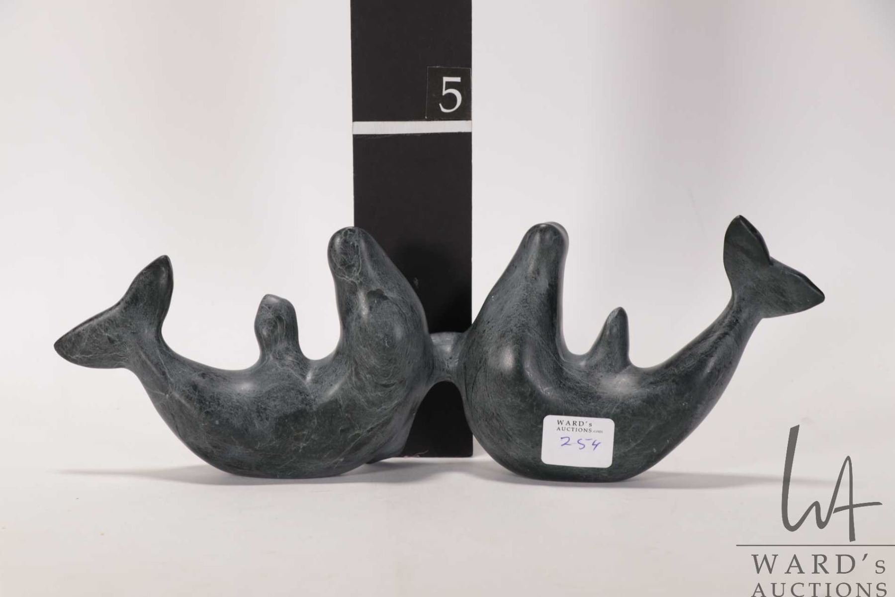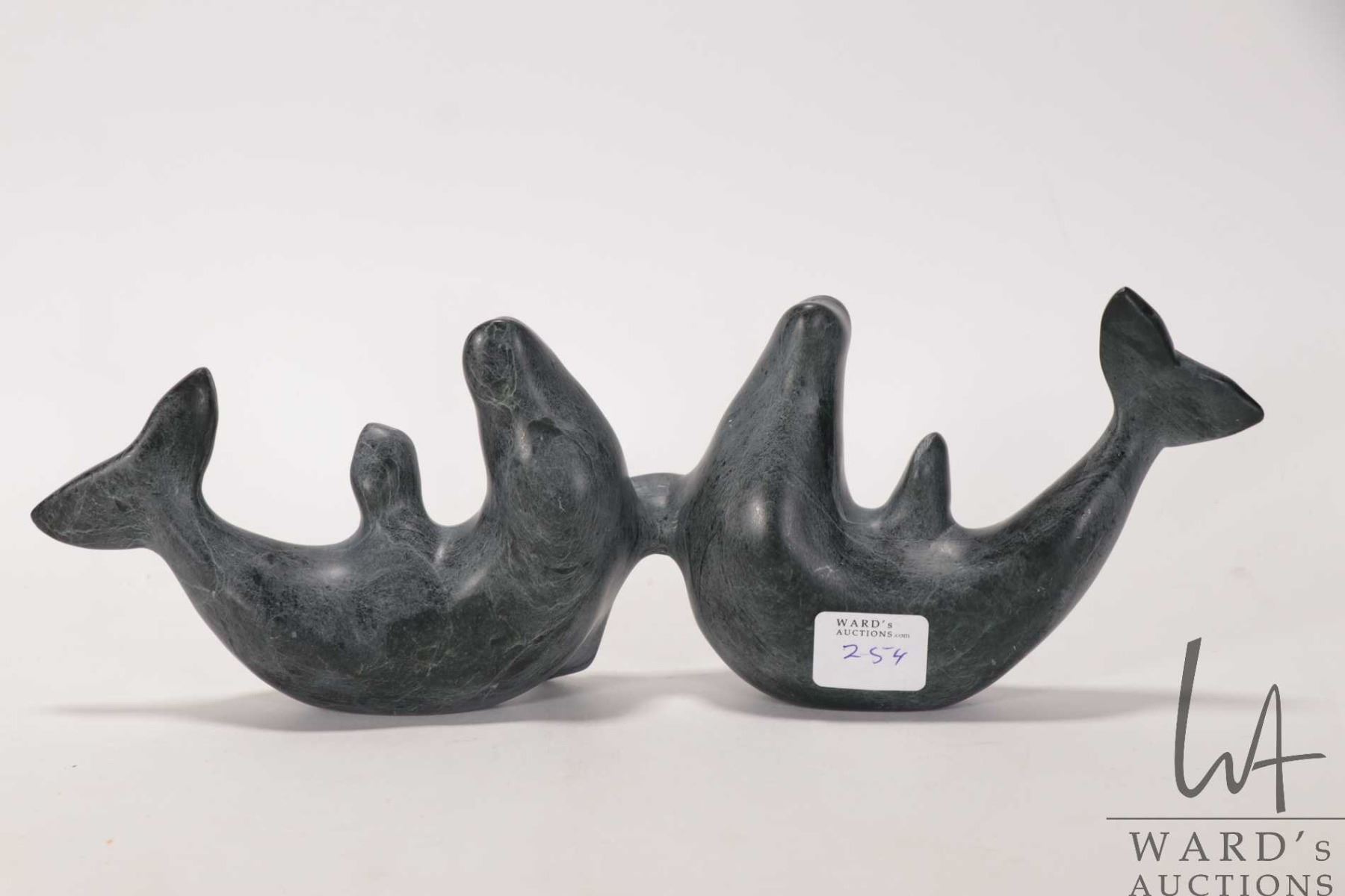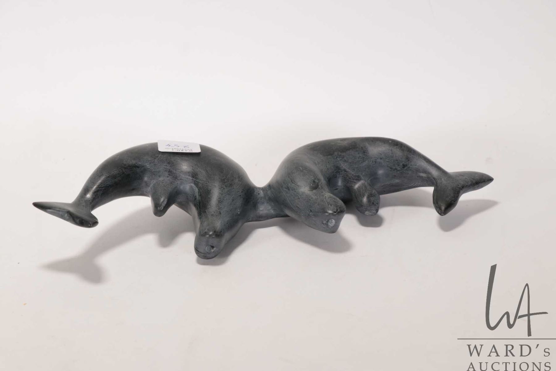Tony Totan, Inuit carved soapstone whales 10 1/2" in length